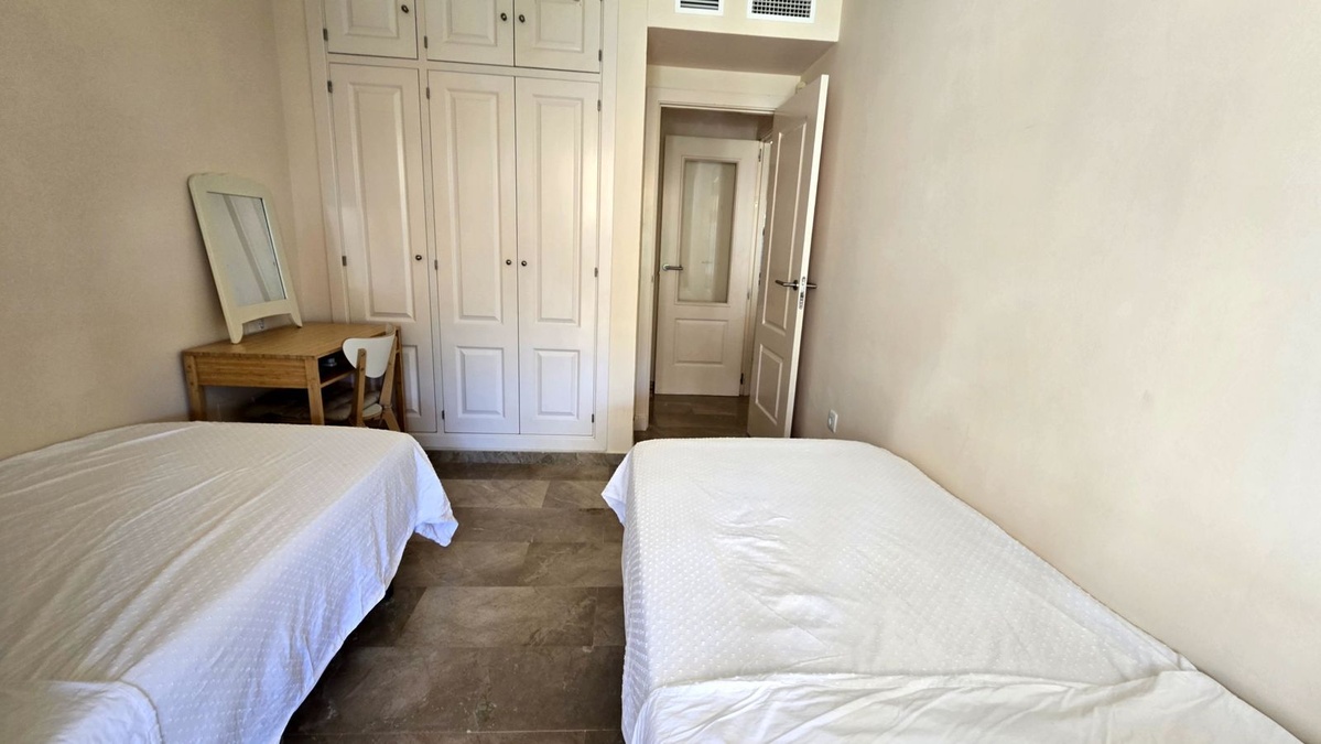 This spacious and bright apartment has been modernised to the highest standard, featuring elegant marble flooring throughout and premium furnishings. The large living and dining area opens directly onto a generous terrace overlooking the lush fairways — the perfect space to relax or entertain year-round.