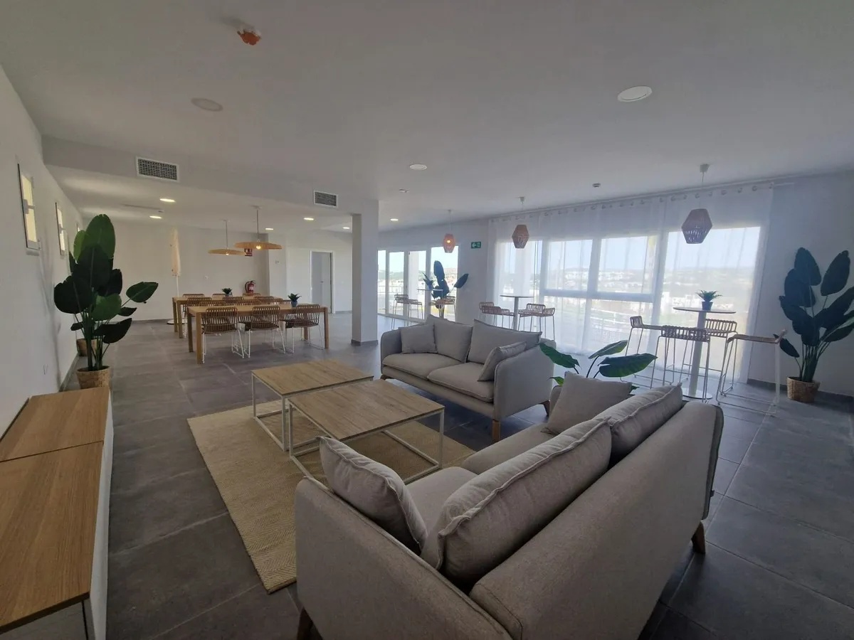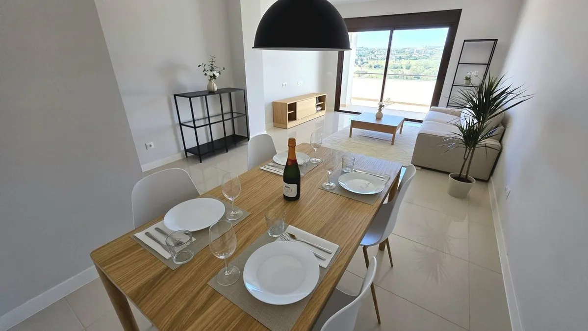 This brand new, modern two bedroom, two bathroom apartment boasts spectacular sea and golf views from its communal areas. Set within a secure gated community with large communal tropical gardens, two swimming pool areas, tennis and a large co-working space.