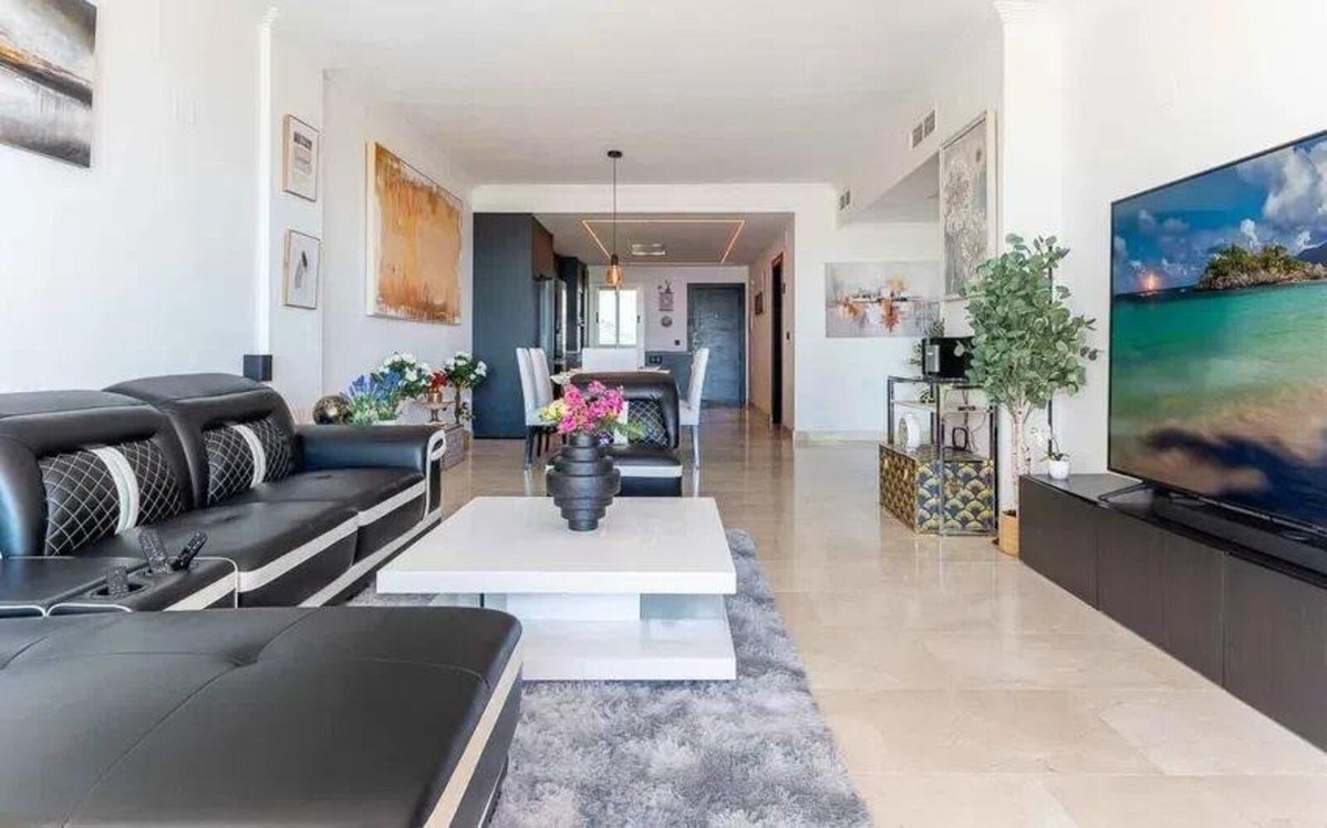 The apartment has two bedrooms, two full bathrooms, and a spacious terrace with beautiful views of the sea, the golf course, and the common areas. The complex offers several swimming pools, including a children's pool, and is close to a gym, paddle tennis courts, and a playground for the little ones.