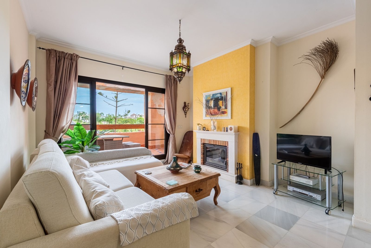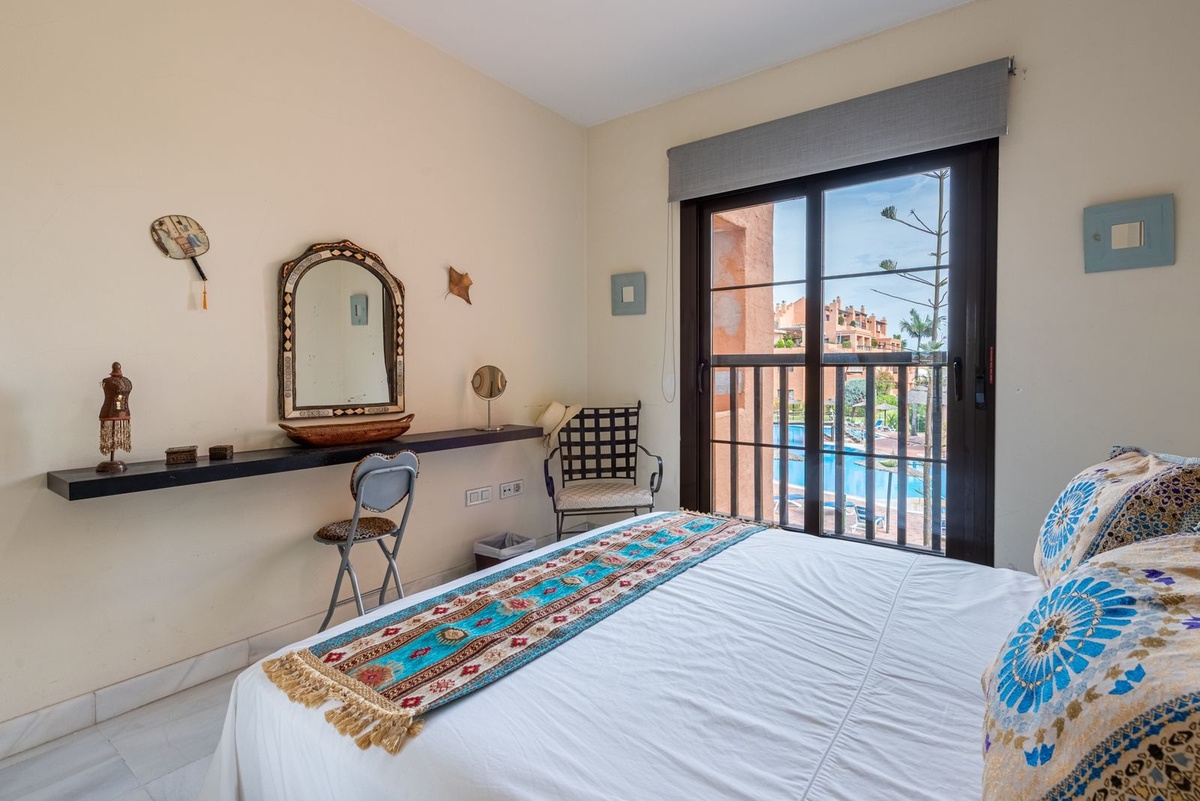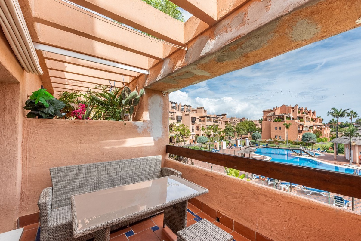 A beautifully located first-floor apartment in the highly sought-after Hacienda del Sol development. The apartment features a spacious master bedroom with an en-suite bathroom, a second bedroom, and a family bathroom. The terrace overlooks one of the stunning swimming pools, making it an ideal holiday home. The sale also includes a parking space and a storage room.