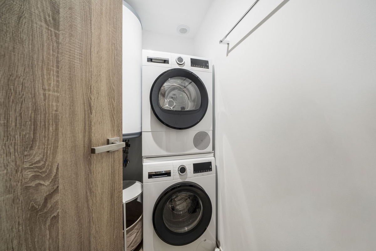 The apartment has been enhanced with high-quality upgrades, including a custom-designed kitchen, freshly painted and wallpapered interiors, insect screens, and elegant sheer curtains. The standout feature is the expansive 57 m² south-east facing terrace, which can be fully enclosed to create an extended living area ideal for year-round enjoyment. From here, you can take in beautiful views of the sea, golf course, and surrounding countryside.