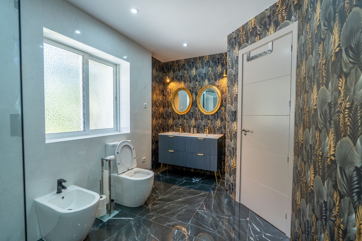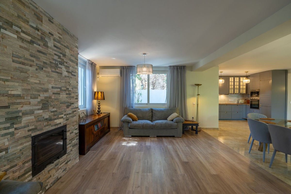 Inside, the property features four spacious bedrooms and three modern bathrooms. The main living area is bright and open-plan, seamlessly connecting the lounge, dining area, and a fully equipped contemporary kitchen. High-quality finishes include porcelain and stone flooring, fitted wardrobes, and a combination of central heating and air conditioning. The property is sold fully furnished, in excellent condition, and with optional furniture upgrades available.