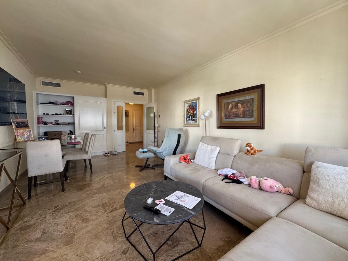 This inviting apartment sits on the third floor, flooding the interiors with natural light throughout the day. It offers a spacious layout with a complete master suite and two additional bedrooms sharing a bathroom. The living and dining area connects seamlessly to the kitchen, with the option to create a modern open-plan design. All three bedrooms, together with the living area, have direct access to a generous west-facing terrace that enjoys partial sea views. A courtesy bathroom and a separate laundry room add to the comfort and functionality of the home. Additional features include A/C throughout, fitted wardrobes, blinds, class curtains on the terrace, an underground garage space, and a storage room.