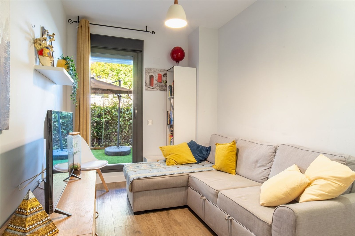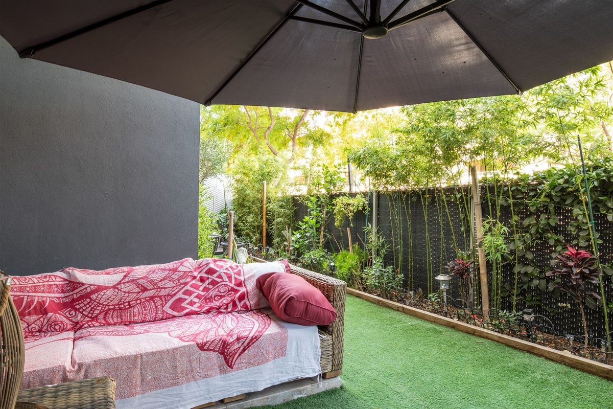 On the terrace: an electric awning and artificial grass, creating a practical and comfortable outdoor space.