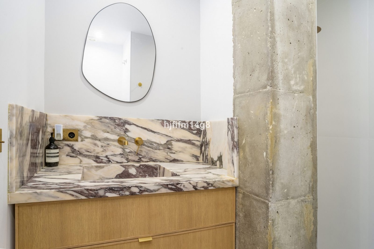 The apartment features three rooms and two bathrooms, all meticulously renovated with high-quality materials and contemporary finishes. The third room, currently arranged as an office, can easily be converted back into a bedroom if desired — offering valuable flexibility for your lifestyle needs.