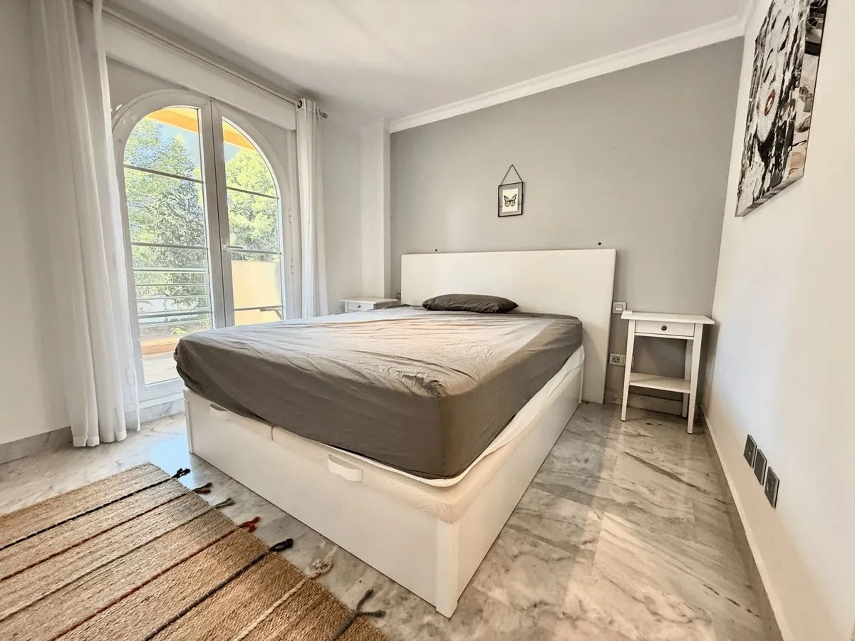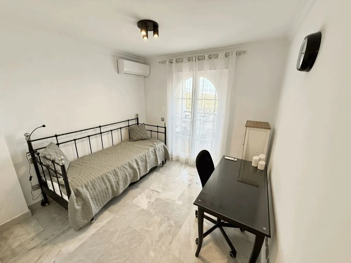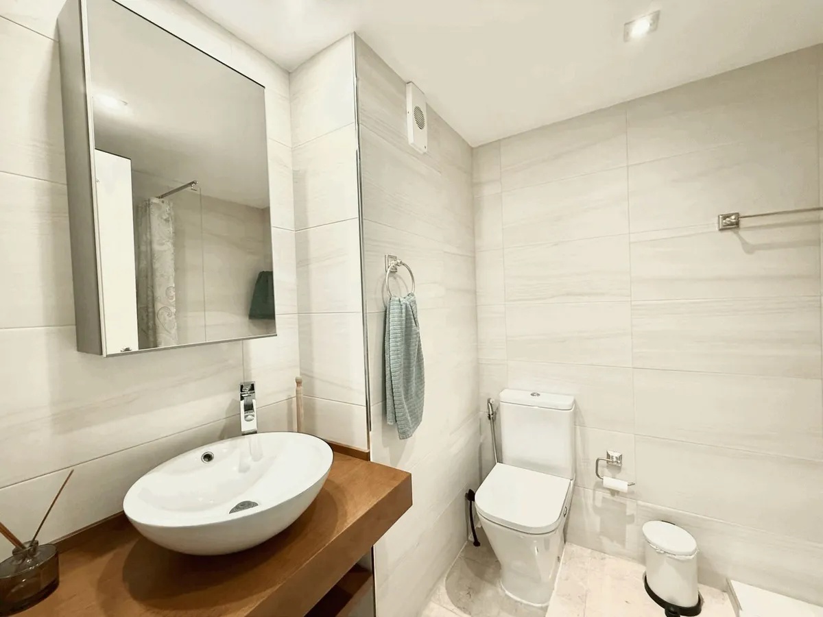 The master bedroom features a king-size bed, built-in wardrobes, an en-suite bathroom, and direct access to a private terrace. The second bedroom is fitted with a pull-out bed, has access to the main terrace, and sits adjacent to a guest bathroom with a shower. This home combines comfort and functionality, making it ideal for long-term living.