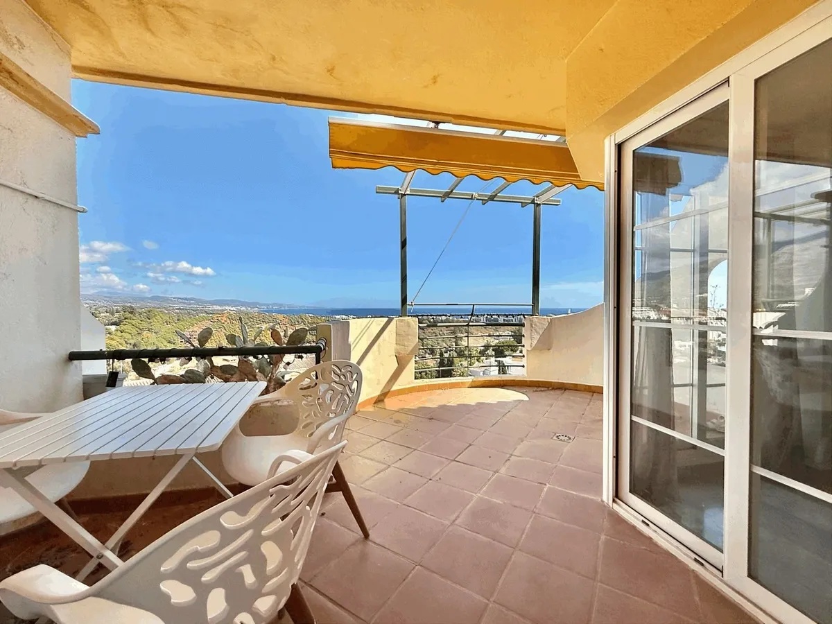 Located on the 4th floor with elevator access directly from the garage, the property offers a thoughtfully designed layout. The fully equipped kitchen is separate, while the open-plan living and dining area flows seamlessly onto a generous terrace, complete with an outdoor dining set—perfect for soaking up the stunning views of the gardens, pools, mountains, and coastline.