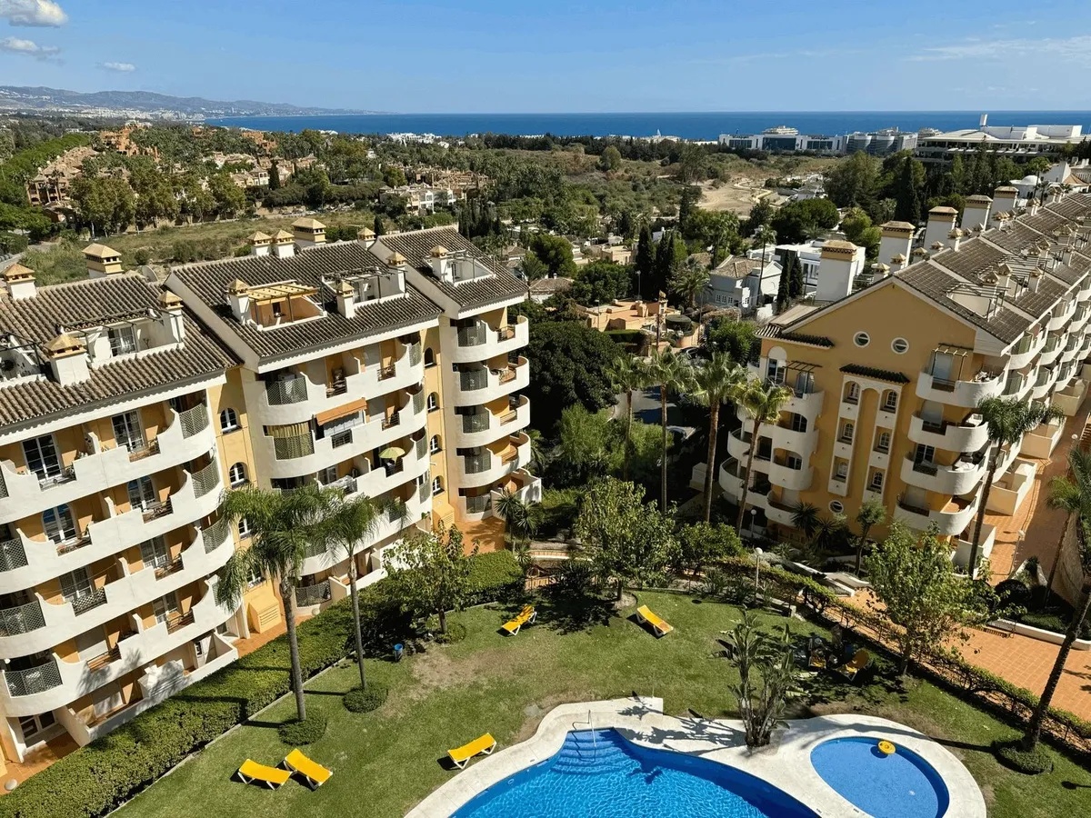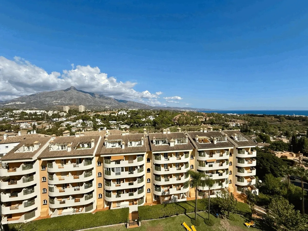 This bright and spacious two-bedroom apartment is situated in the sought-after Señorío de Aloha complex in Nueva Andalucía. The gated community provides 24-hour security and boasts three communal swimming pools with waterfalls, separate children’s areas, and beautifully maintained gardens. A private underground parking space is also included. From the apartment, you’ll enjoy breathtaking views of the pools, mountains, and the Mediterranean Sea.