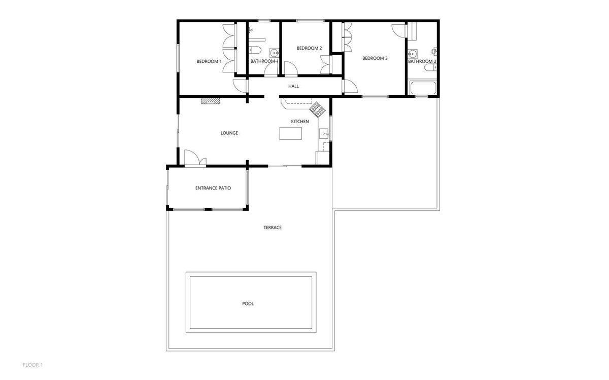 The villa features three bedrooms and two bathrooms. One of the bedrooms includes an ensuite bathroom. The house has a solid structure, but in some areas it could use a little love and attention to truly shine.
