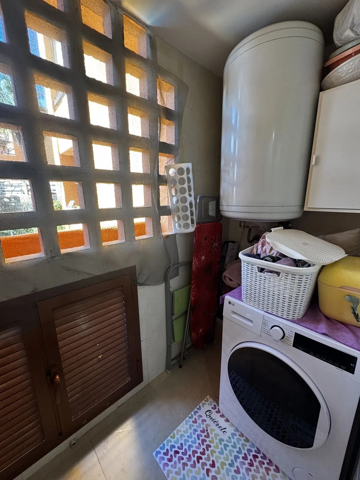 Entrance hall, fully equipped kitchen with separate laundry room, living-dining room with access to the covered terrace or second living room, and terrace with views of the pool and private garden. Two bedrooms with two fully renovated bathrooms, the master en suite. A 20 m2 garden is for private use and is maintained by the community.