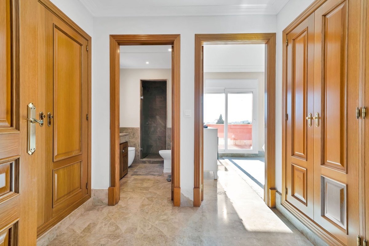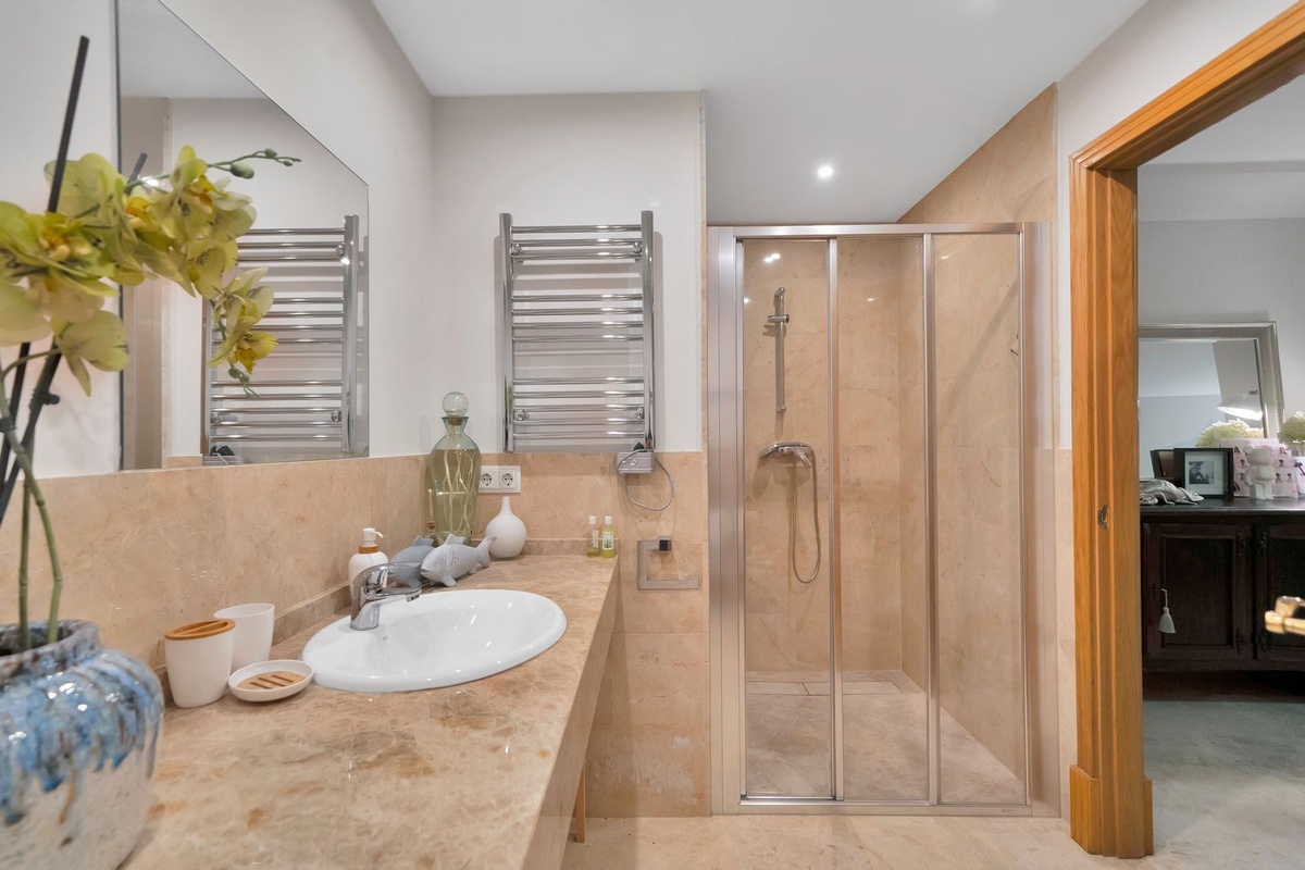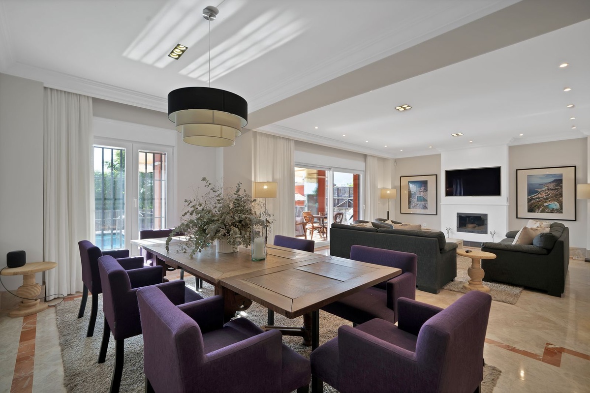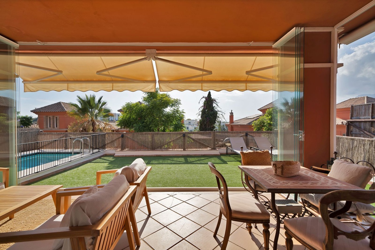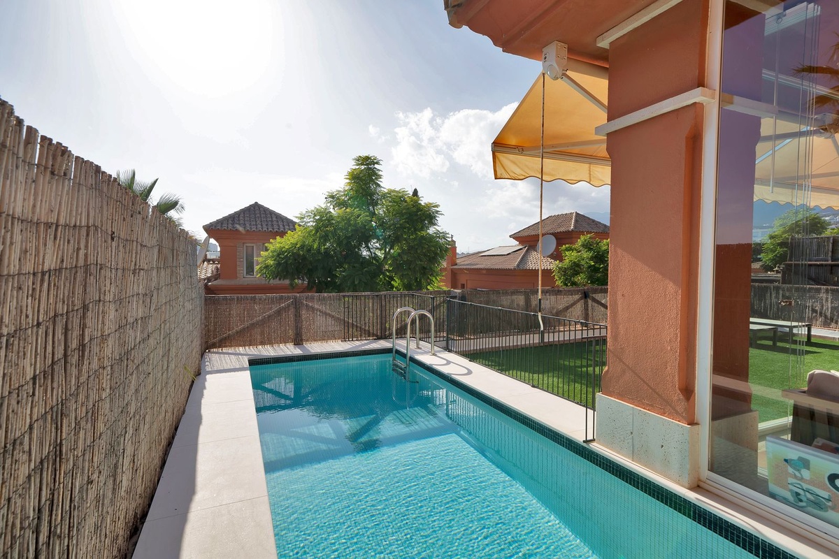 Exclusive Semi-Detached House with Sea and Mountain Views in Santa Clara Golf, Marbella.We present this exclusive semi-detached house located in the prestigious Santa Clara Golf residential area in East Marbella. Surrounded by nature, golf courses and with stunning sea and mountain views, this property offers a sophisticated and peaceful lifestyle, just a few minutes from the centre of Marbella and the best beaches in the area. It also has nearby amenities such as schools, supermarkets and the Costa del Sol Hospital.With a built area of 313.37 m2, this 5-bedroom, 6-bathroom property, 5 of which are en-suite, combines modern design, spacious interior and exterior areas, and top-quality finishes, all in a gated community with 24-hour video surveillance.Layout of the property:On the main floor there is a spacious and bright living-dining room thanks to the large floor-to-ceiling windows and the contemporary-style open-plan kitchen, which is fully equipped and renovated, blending in perfectly with the interior space.A full bathroom with shower, ideal for guests or people with reduced mobility.A 21.18 m2 Lumon porch leads to a 116.36 m2 garden surrounding the entire house with a private swimming pool.The upper floor has three double bedrooms, all with en-suite bathrooms and fitted wardrobes, and the master bedroom has a dressing area. Two private terraces, one measuring 13.05 m2 and the other 5.17 m2, with sea and mountain views.The basement floor has a private garage with space for two vehicles and a laundry area. Additional parking is available on the private road next to the property. A multipurpose room with a full bathroom, which can be used as a second living room, games room, gym, office or even as a fifth bedroom.And an additional bedroom with en-suite bathroom, ideal for staff, guests or as a separate room.This is a gated community with 24-hour video surveillance and security service. It also has a communal swimming pool, located in a quiet and safe environment, surrounded by nature and golf courses.This property is perfect both as a primary residence and for those looking for a luxury second home in one of the most sought-after areas of the Costa del Sol. Additional information:The property is available immediately.The Abbreviated Information Document is available. Taxes (ITP).For more information or to arrange a viewing, please do not hesitate to contact us.ERE