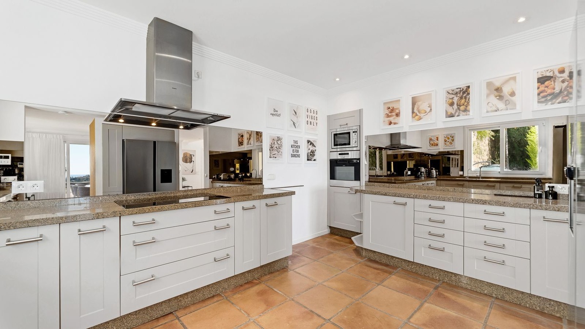 Outdoor living is at the heart of the property, with landscaped Mediterranean gardens, multiple terraces, a private pool with panoramic views, and a rooftop solarium. Designed for entertaining, it features two barbecue areas, ambient night lighting, and an automatic irrigation system.