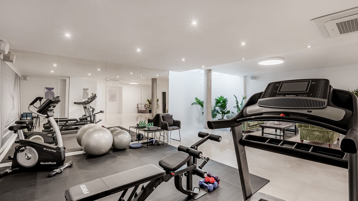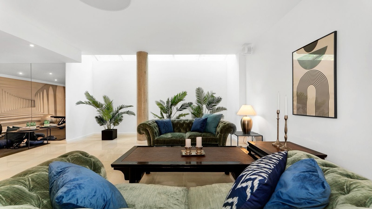 The villa is equipped with a Sonos sound system in the living areas and gym, fibre optic Wi-Fi, an indoor lift serving all four levels, underfloor heating, and individually controlled air conditioning.