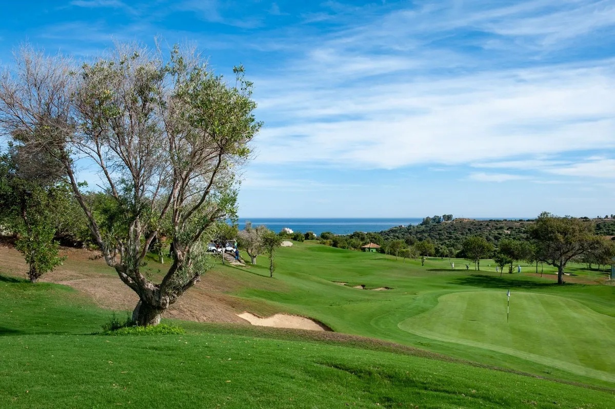 Unobstructed views of the green fairways and the Mediterranean Sea.