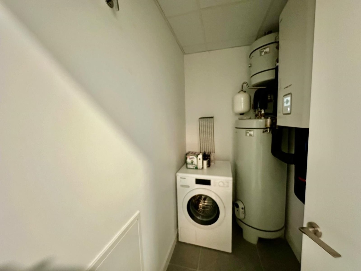 Residents benefit from a host of communal facilities, including a beautifully maintained garden, a large swimming pool, and a fully equipped gym. The apartment also offers a private garage and additional storage room, as well as a laundry room and a guest toilet for added convenience. Security features such as an alarm system and security entrance further enhance the sense of safety and exclusivity.