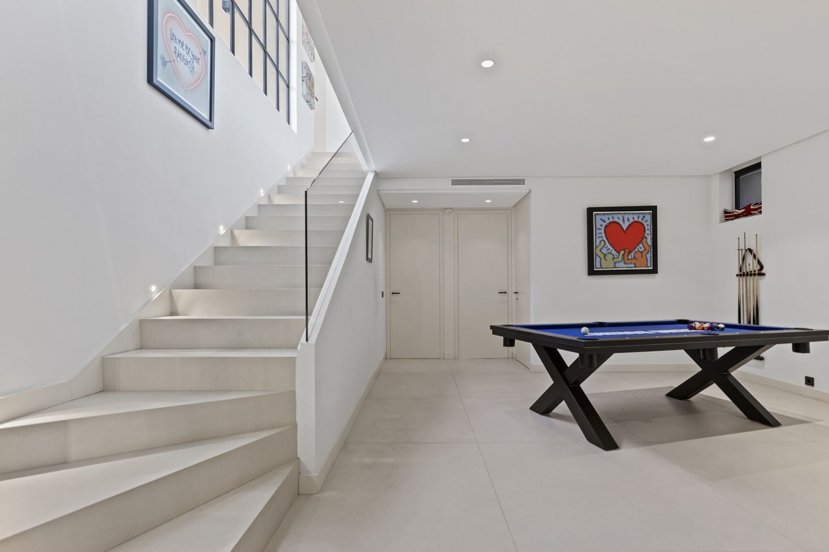 The villa’s detailed ceilings and stylish finishes create a sense of understated elegance throughout. Outdoors, a private pool and garden provide ample space for entertaining, dining, or simply relaxing under the sun. With two floors of living space, plus a finished cozy basement complete with a pool table, lounge area, and TV, there is plenty of room for family, guests, or leisure.