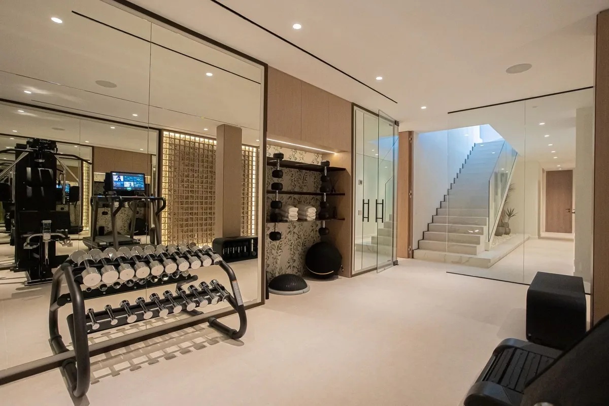 For wellness and leisure, the home features a dedicated meditation area, fully equipped gym, sauna, and jacuzzi, ensuring that both body and mind are fully rejuvenated.