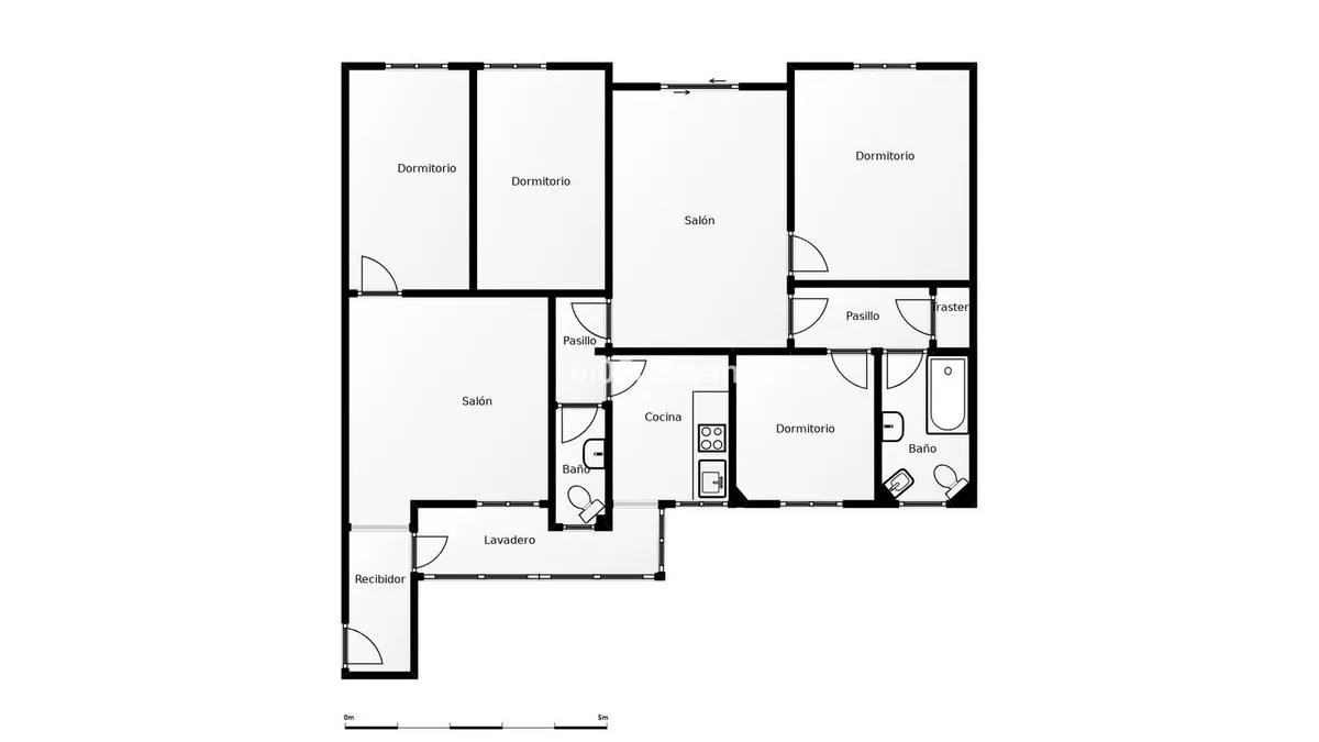 This spacious and bright property, ideal for renovating to your liking, boasts an excellent layout. It consists of one double bedroom and three single bedrooms, a full bathroom, and a guest toilet. The large entrance hall and two spacious living rooms, one of which opens onto a terrace, are perfect for adapting to your needs. It also includes a laundry area.