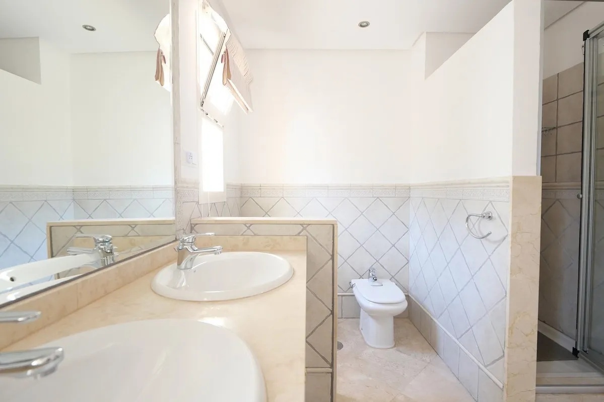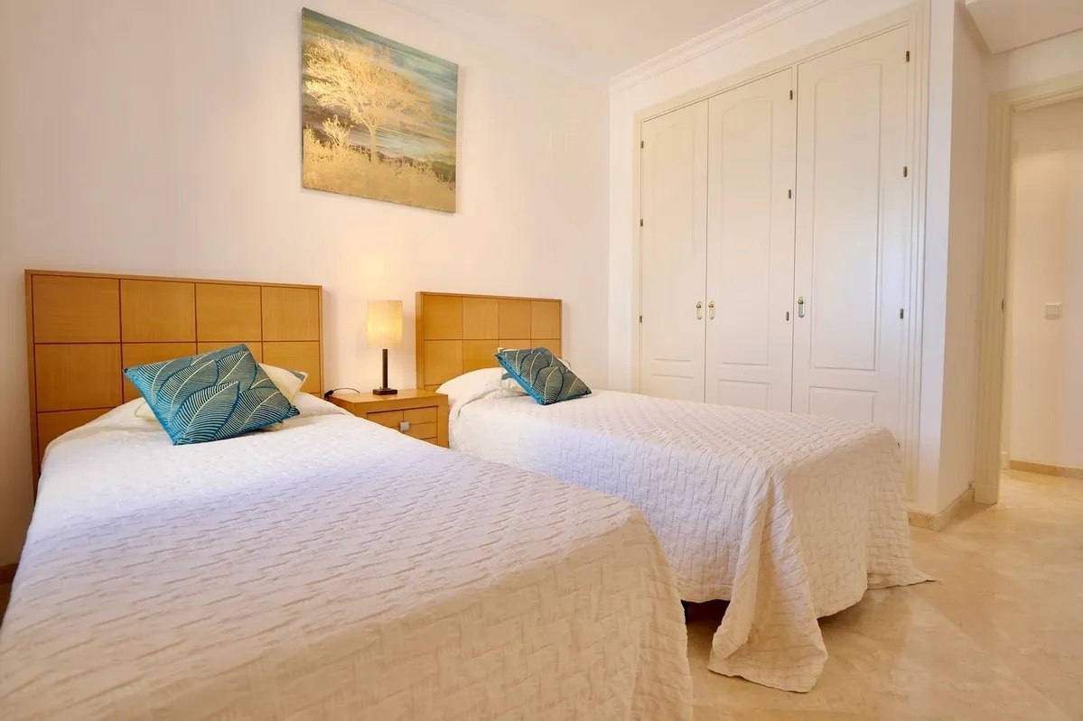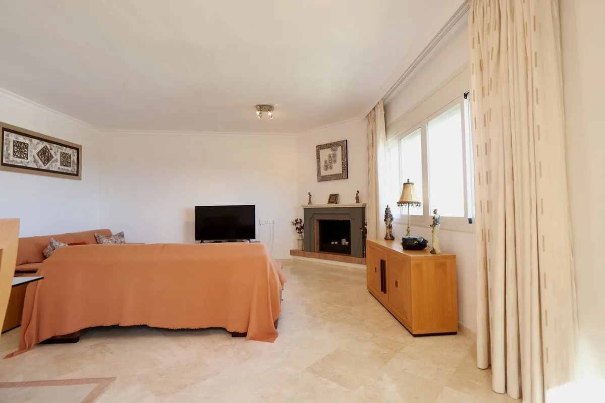 This excepcional two bedroom top floor apartment is located in a gated complex in La Mairena. ann elevated area located in the hills above the beaches of Elviria and East Marbella. The residents of La Mairena enjoy low density relaxed living in natural surroundings. The area has a number of renowned complexes, high end luxury villas of enjoying amazing views. The apartment itself has hot and cold air-conditioning , high quality marble flooring, a granite worktop in the kitchen and a larger than average living room and a good sized terrace with amazing sea view, mountain and coastal view. Included in the price is a very useful private store room annd a private covered parking space. The complex has community gardens, swimming pools and even paddle tenis courts available for its owners.
