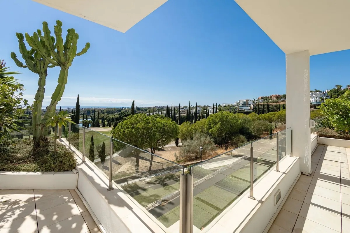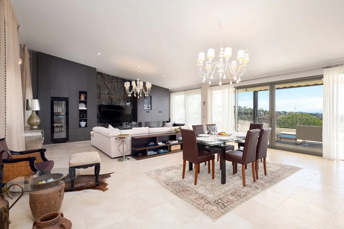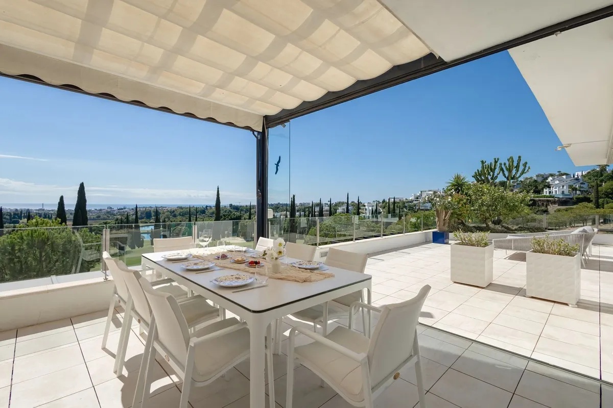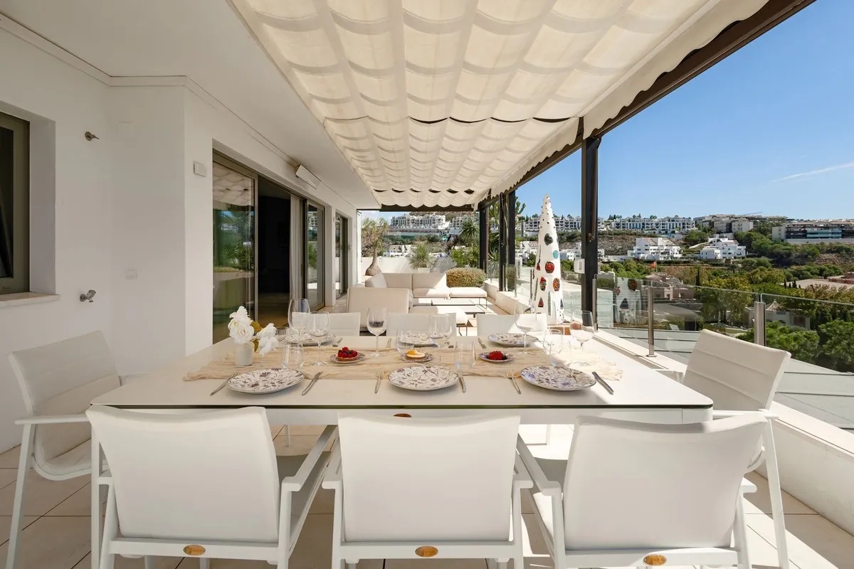 This stunning modern penthouse offers elegance, privacy, and breathtaking panoramic views across the Los Flamingos Golf Course and the Mediterranean beyond.
