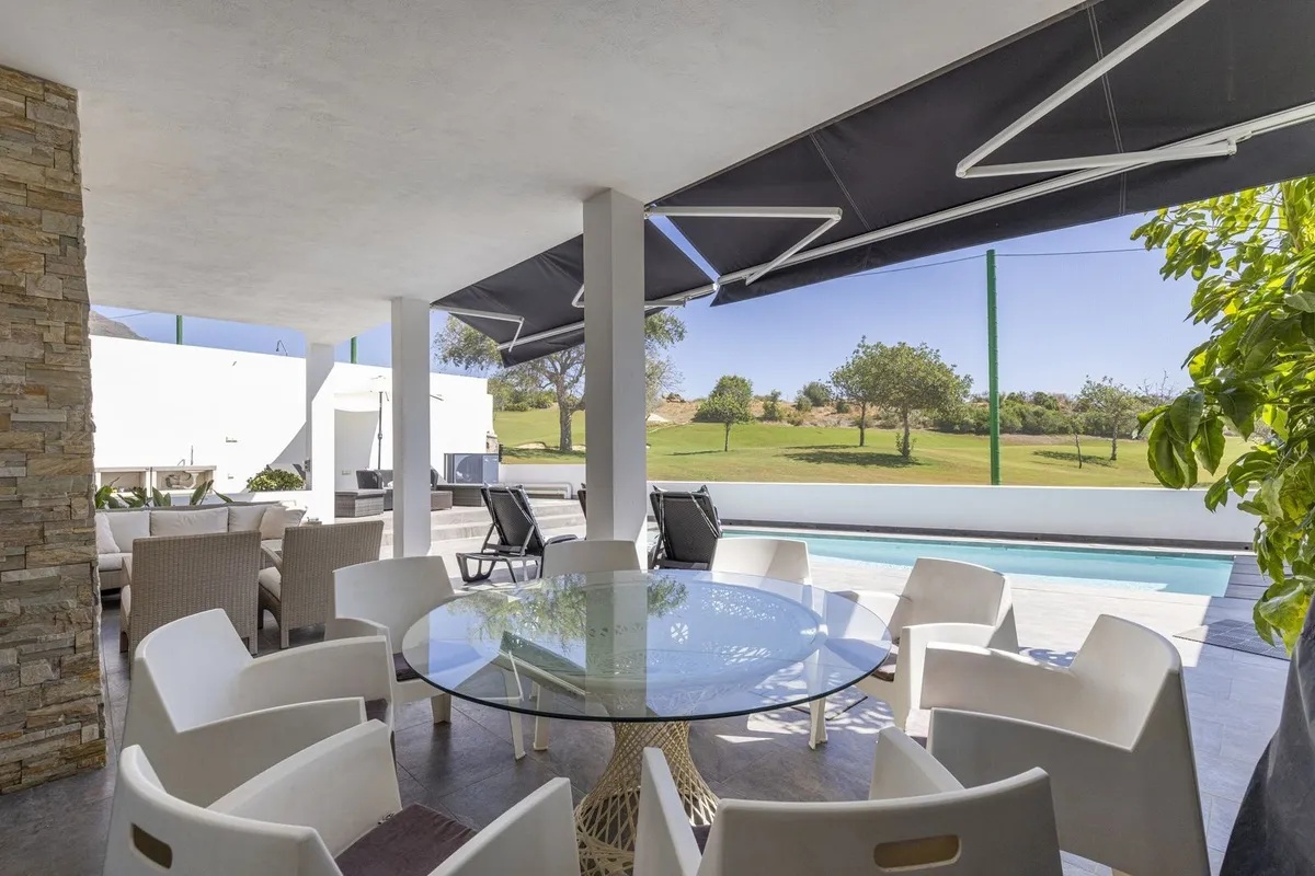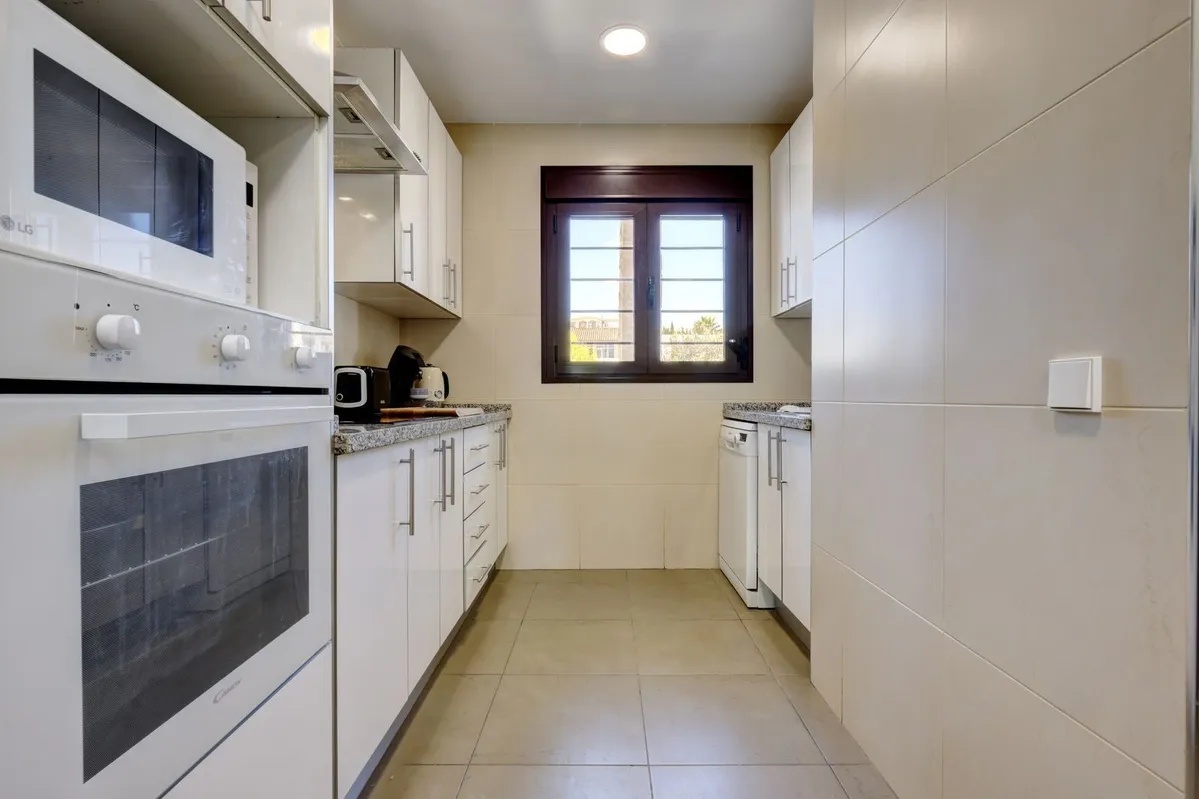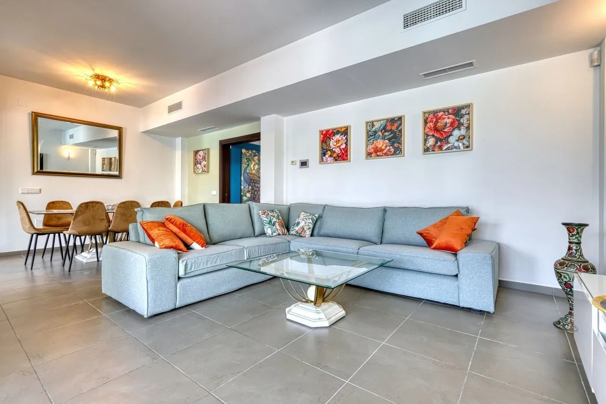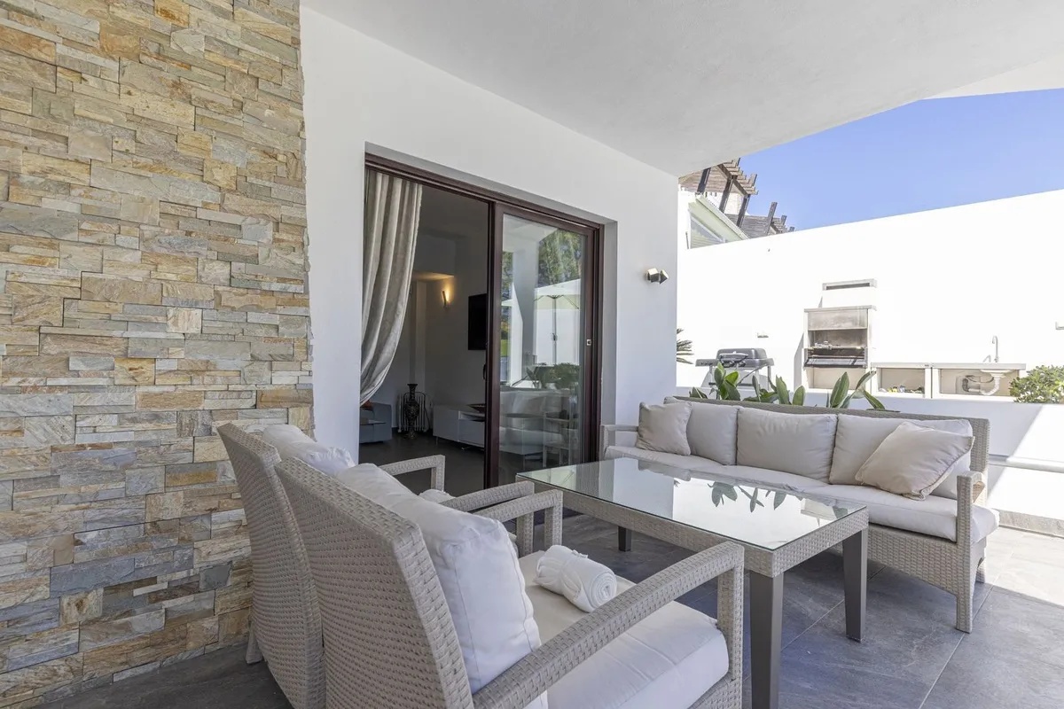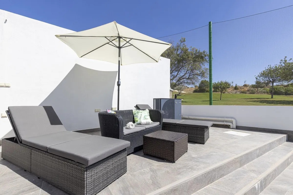 Discover your dream home on the Costa del Sol! This stunning three-story semi-detached villa, located frontline to the Valle Romano Golf Course, offers an exceptional Mediterranean lifestyle. With 4 spacious bedrooms and 3.5 bathrooms, this property comfortably accommodates up to 8 guests — ideal for families or groups of friends.