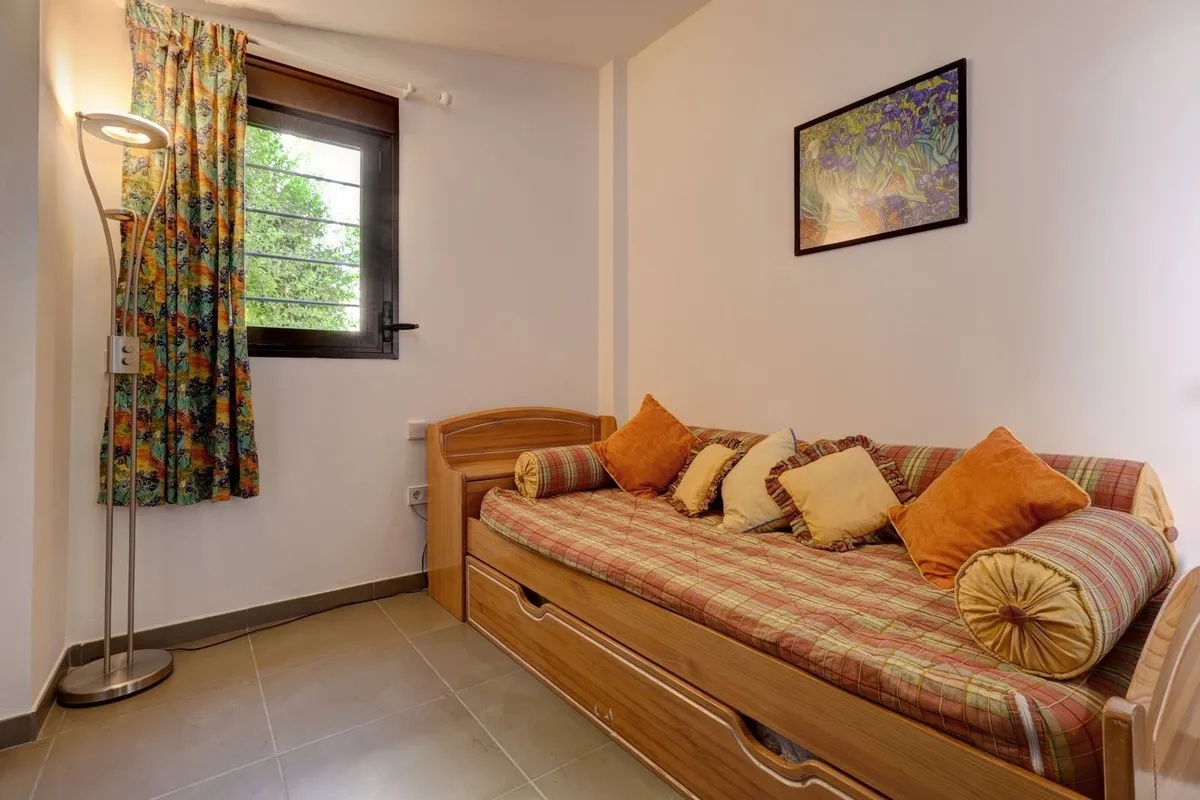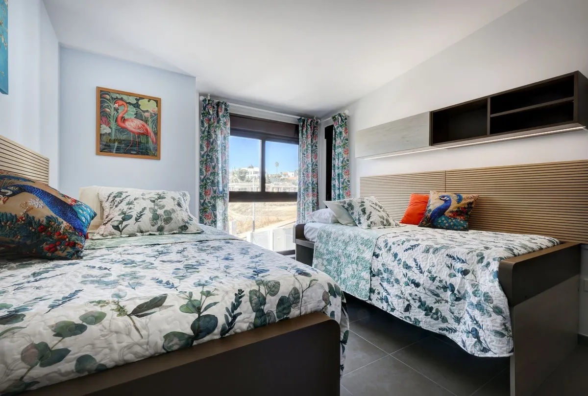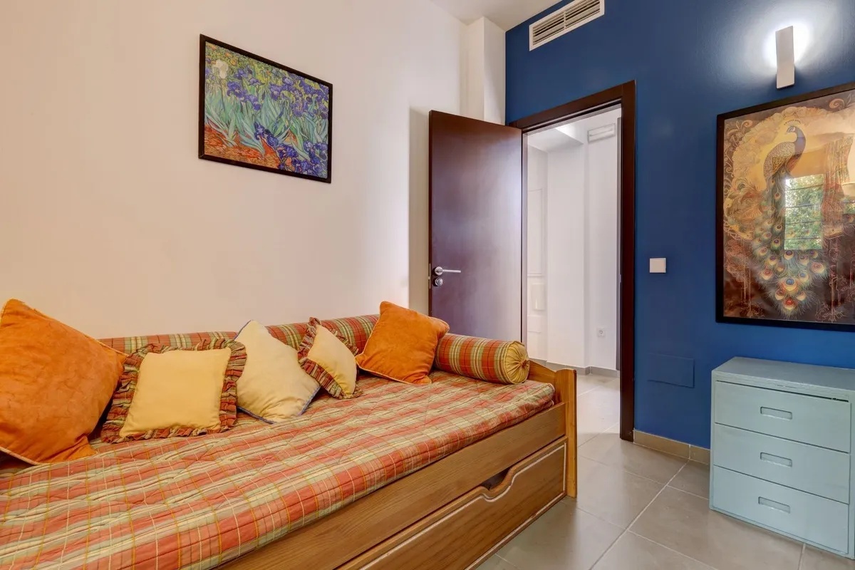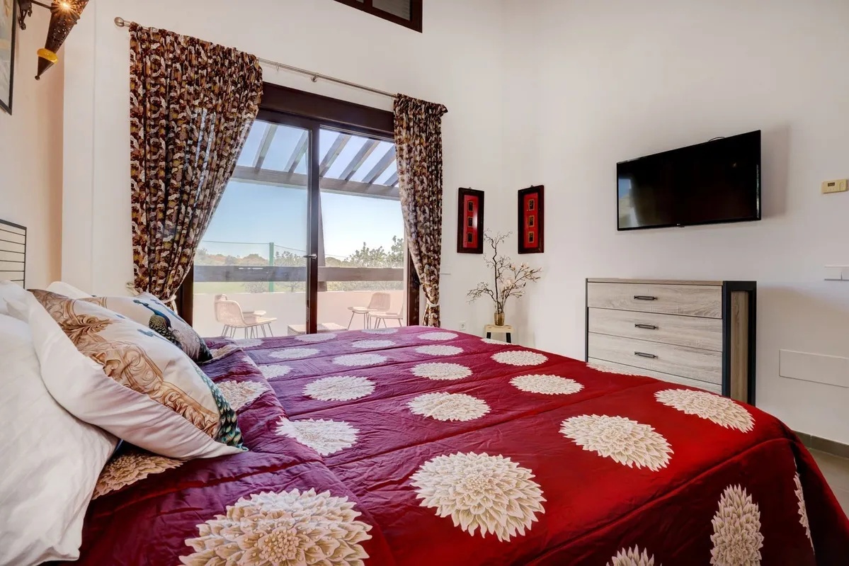 The highlight of the home is the master suite, featuring an Emperor-size bed and a luxurious en-suite bathroom with jacuzzi. The additional bedrooms are equally inviting, including one with a king-size bed and dedicated workspace — perfect for those who need a productive corner while enjoying the sunshine.