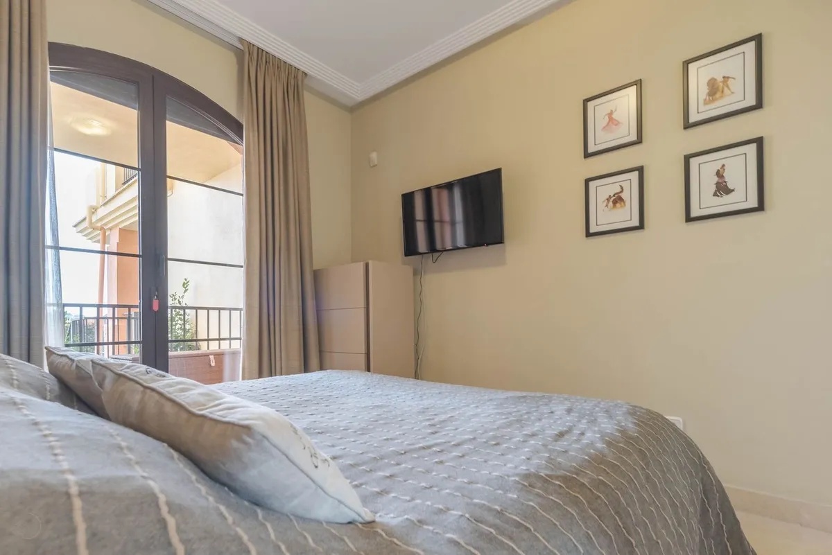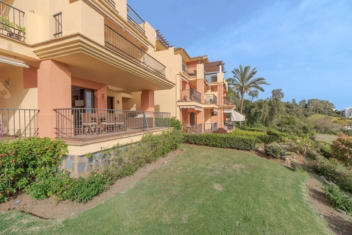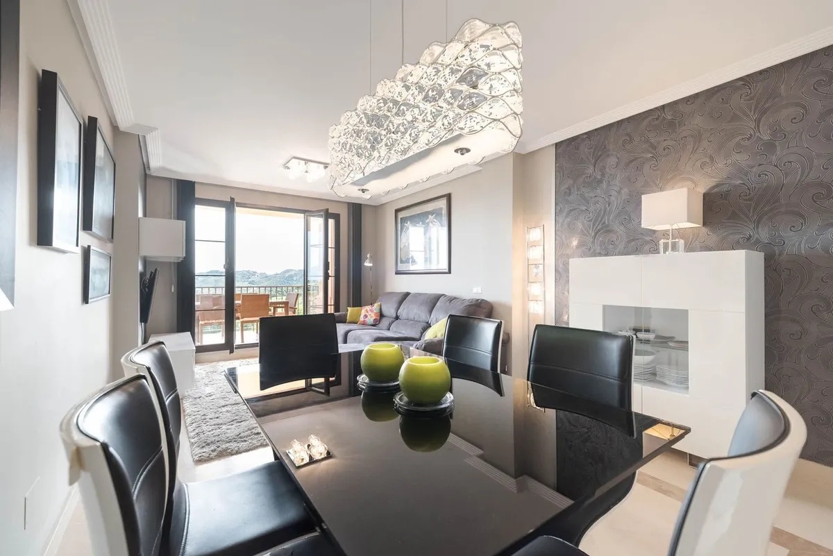 This beautiful ground floor apartment offers breathtaking views over the golf course, the Mediterranean Sea, and the surrounding mountains.