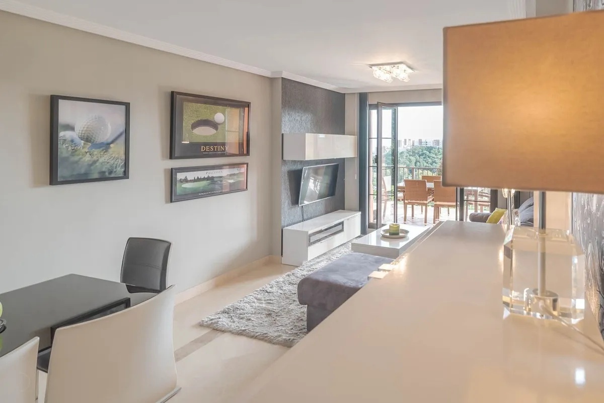 The complex is designed in such a way that the apartment enjoys uninterrupted panoramic sea and golf views, creating a wonderful sense of space and tranquility.