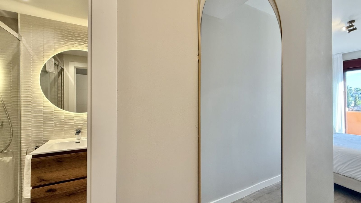This fantastic 2 bed 2 bath apartment is fully furnished and tastefully decorated. A south-east facing private terrace overlooks the El Paraíso golf course, the La Concha mountain, and a communal swimming pool.