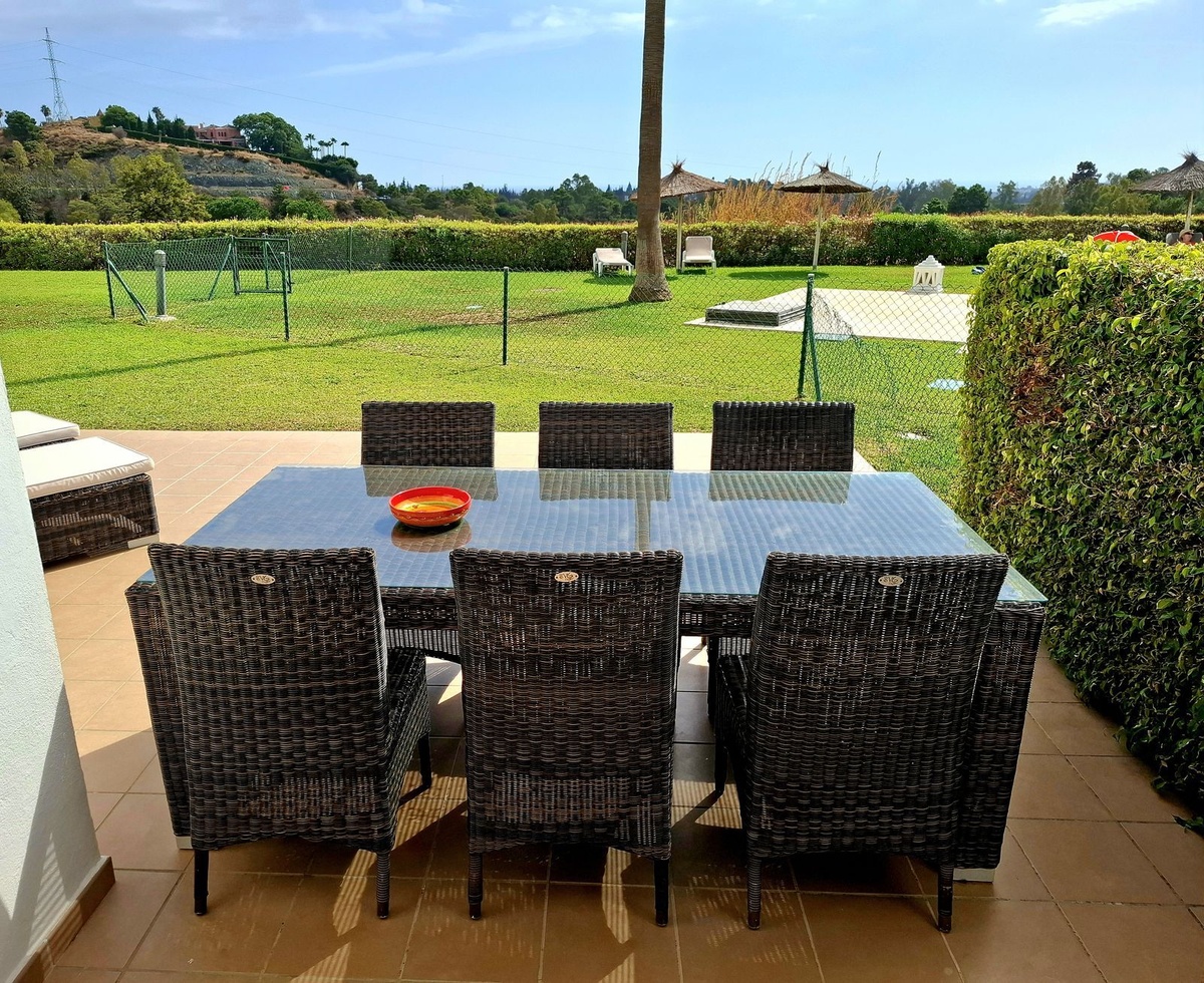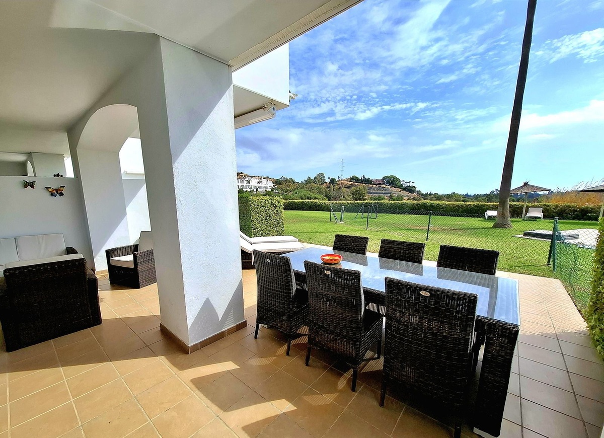 Experience peace and comfort in this modern ground-floor apartment, ideally located in the sought-after residential area of Los Robles de Los Arqueros. This exclusive gated community is surrounded by lush tropical gardens and offers a perfect blend of contemporary living and natural beauty.