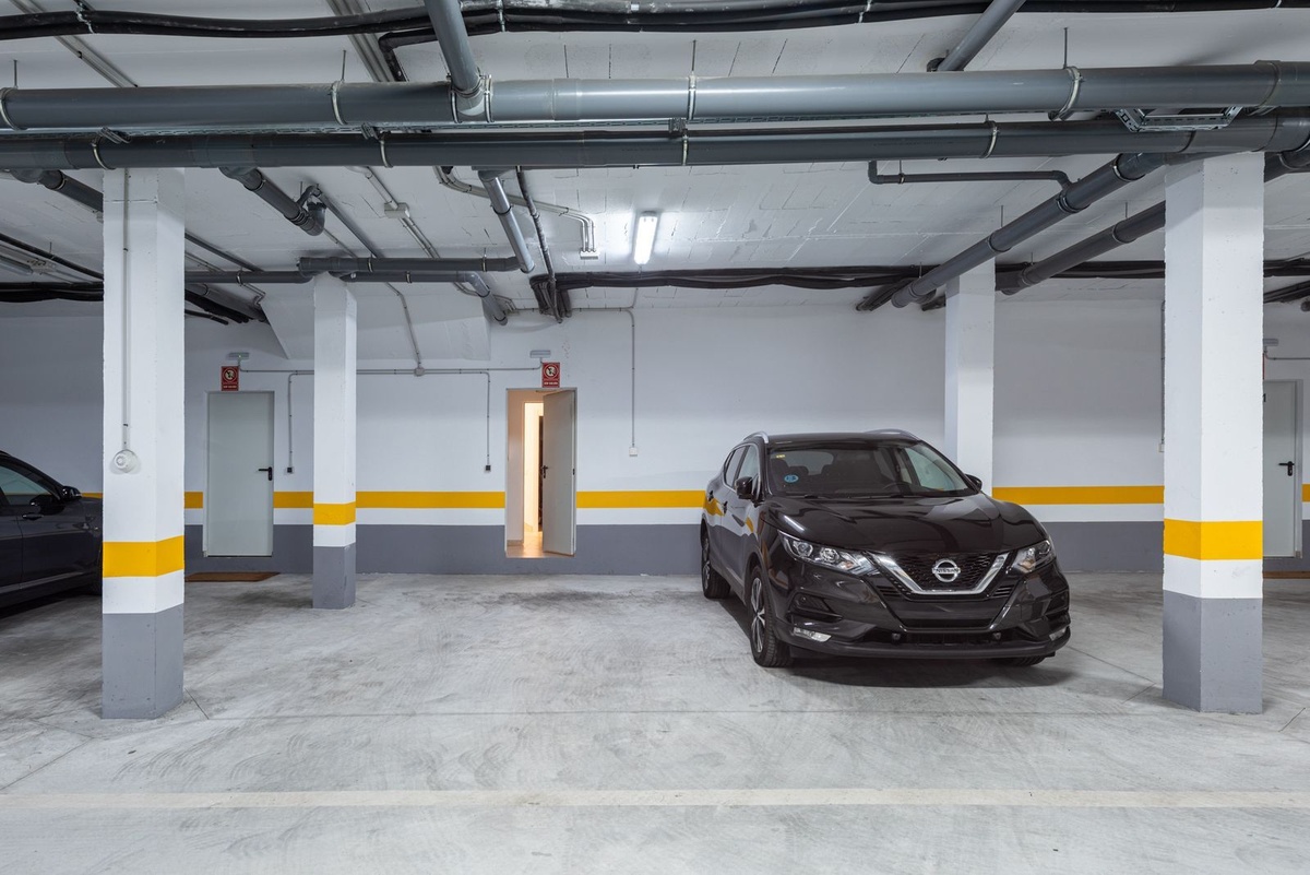 The lower floor includes a laundry room and a spacious multi-use room, currently used as an additional bedroom and TV lounge. From this level, you have direct access to two private parking spaces, offering both comfort and convenience.