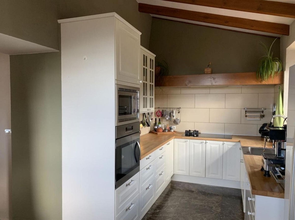 The main house welcomes you with a generous, light-filled living room featuring high-quality parquet flooring. Large windows offer overwhelming views of the surrounding natural beauty and flood the space with natural light. The ground floor also includes a versatile space perfect for a home office, library, or second sitting area. The spacious kitchen awaits your personal touch and appliances of choice.