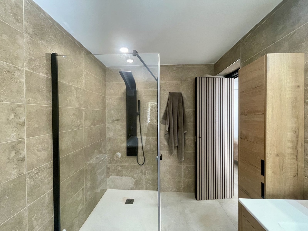 Outside, the property features a generous private garden with plenty of space for outdoor dining, play or further development. There are still unused square metres that could be incorporated into the living space, and a current plan exists to add two additional bathrooms, making all bedrooms ensuite. There is also a small casita in the garden that can be refurbished to create a guest suite, studio or storage area. The plot allows for the construction of a private swimming pool, and 15 of the 22 neighbouring homes have already done so. A shared community pool with sun loungers is located directly next door for convenience