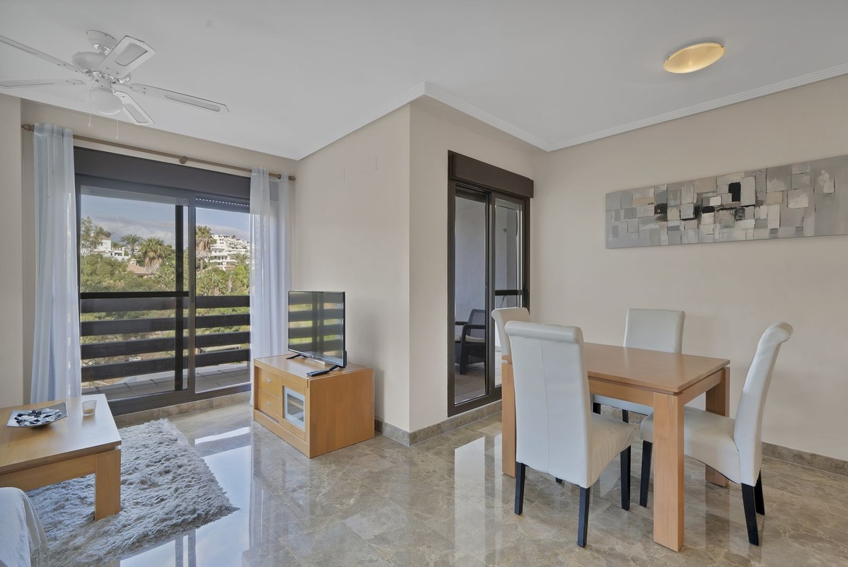Discover this well-appointed 2 bedroom, 2 bathroom apartment is located in the desirable Golf Hills urbanisation in Selwo. The home features a bright and comfortable living space, a fully fitted kitchen with a separate utility area, and a private terrace ideal for outdoor dining or relaxing with views of the surrounding greenery.