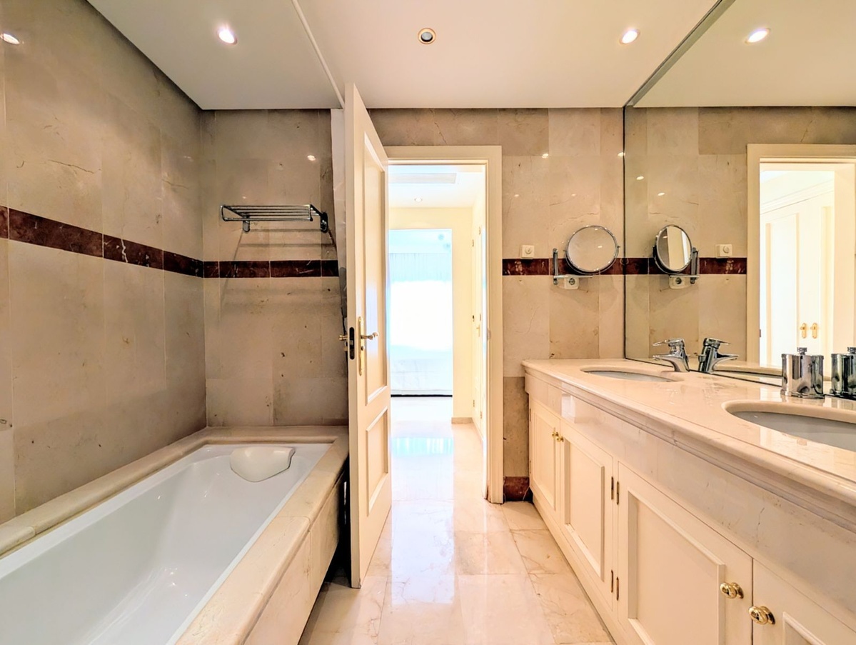 The Penthouse benefits from sunlight all day long, there are three ample terraces with excellent views and one of them comes with built in BBQ and summer kitchen. The entrance level comprises of: entrance hall, fully fitted & equipped kitchen with service bar, great size lounge with dining area and access onto uncovered terrace for al fresco dining. On this floor, there are also two guest bedrooms and two bathrooms. Underfloor heating throughout with independent thermostates per room.
