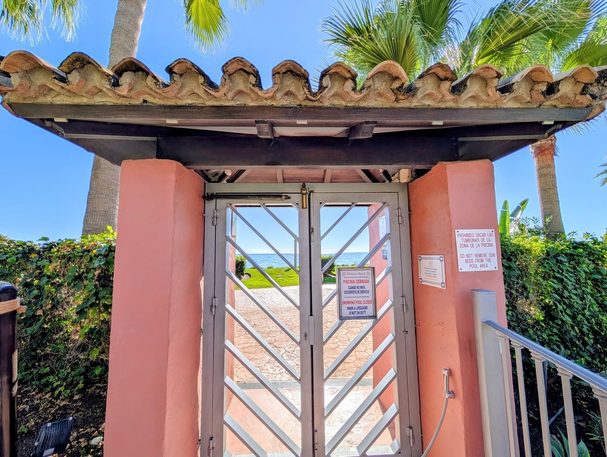 This beachfront complex - Menara - is surrounded by other exclusive complexes which all benefit from landscaped public park with ancient wathing tower. There are also several amenities at the walking distance such as well known restaurant Tikitano and some shops and a bar in nearby complex, more amenities can be found just a short drive from home. Estepona town is 6min drive from Menara and its easily accessible from Malaga Airport using AP-7 toll road.