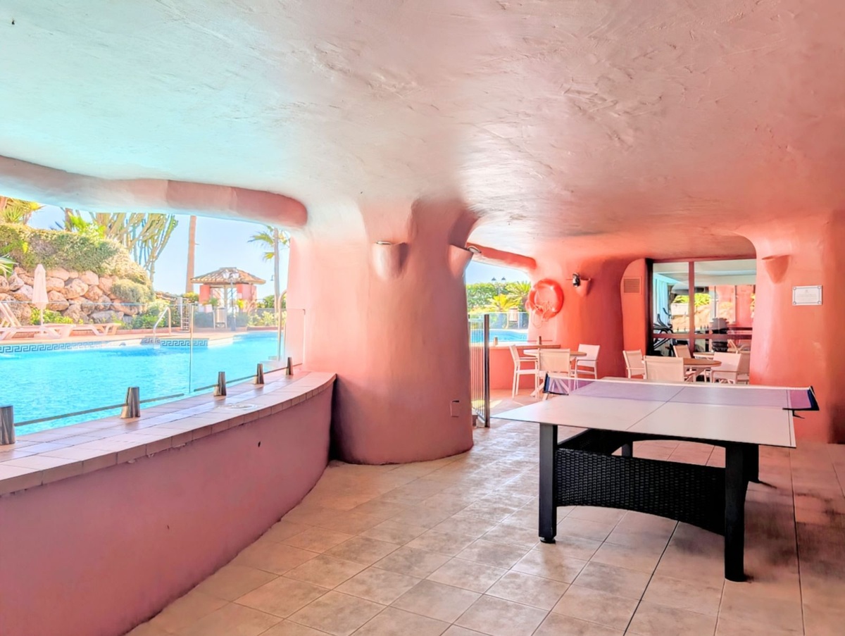 This fully gated urbanisation is renowned for its five-star facilities such as 24/7 security, two amazing swimming pools with waterfall, a heated indoor swimming pool, gym, library, summer bar & table tennis, a sauna and direct access to the beach. The community services all the properties for hassle free living, including technical check-ups etc.
