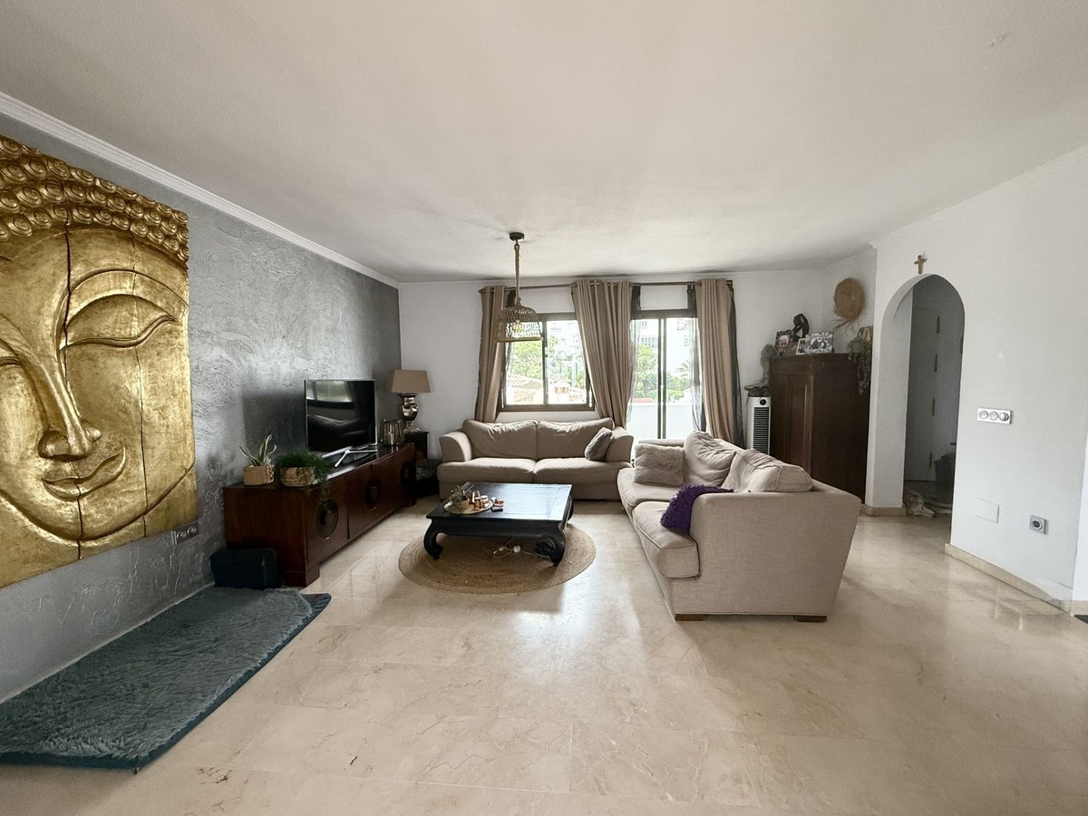 Penthouse apartment with the most stunning, panoramic sea views!!! Located within just a few minutes¨walk to the beach and just a few minutes¨drive to Fuengirola and La Cala de Mijas, this trully superb property is a rare find! The property comprises of a spacious lounge/dining room with pelllet burning fireplace, open plan modern kitchen, one double bedroom with bathroom plus the master bedroom with ensuite bathroom. Both bedrooms have patio door access to the terrace and built in wardrobes. Via patio doors from the lounge, is a stunning glass conservatory/sun lounge, used by the current owner as the dining room. The terrace of the property extends the full length of the apartment and to the side, being a corner property, and offers south facing full frontal and lateral uninterrupted sea views. The community is immaculately maintained, with gated access to the communal carparking area. There is a large swimming pool with sunbathing areas. Local amenities can be walked to also, including bars and restaurants, supermarket, bakery etc.