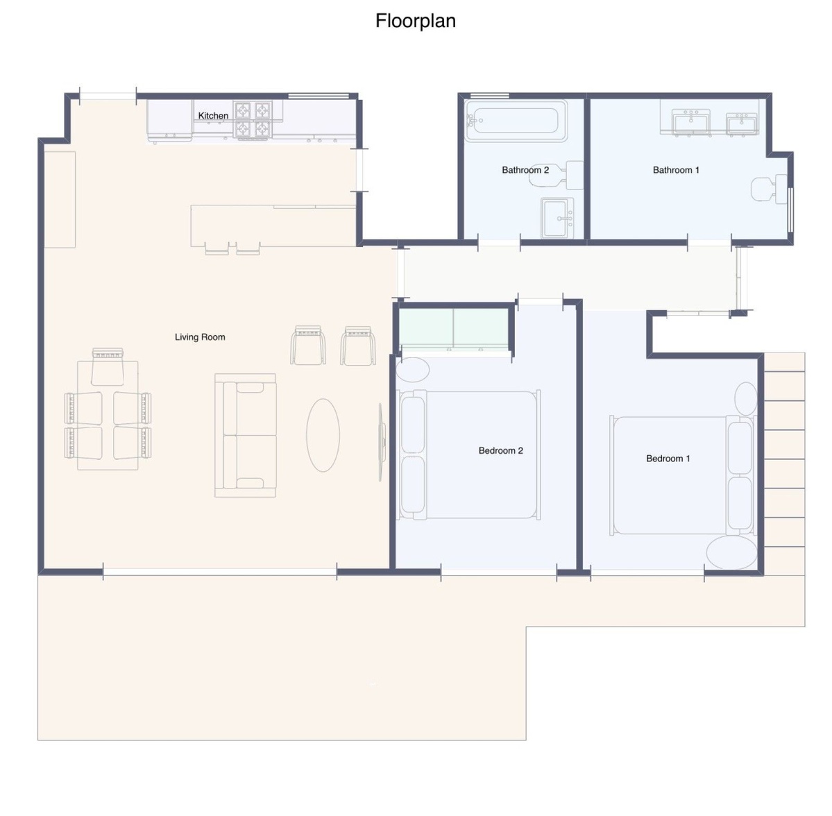 When you enter this home, you immediately feel a calm and harmonious feeling of the open floor plan that seamlessly transitions into a blue sea through the large windows.