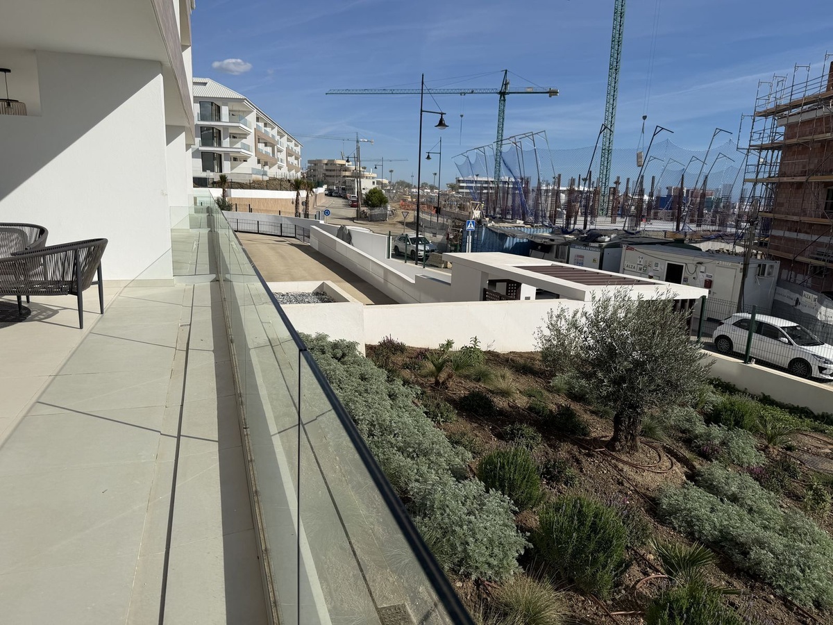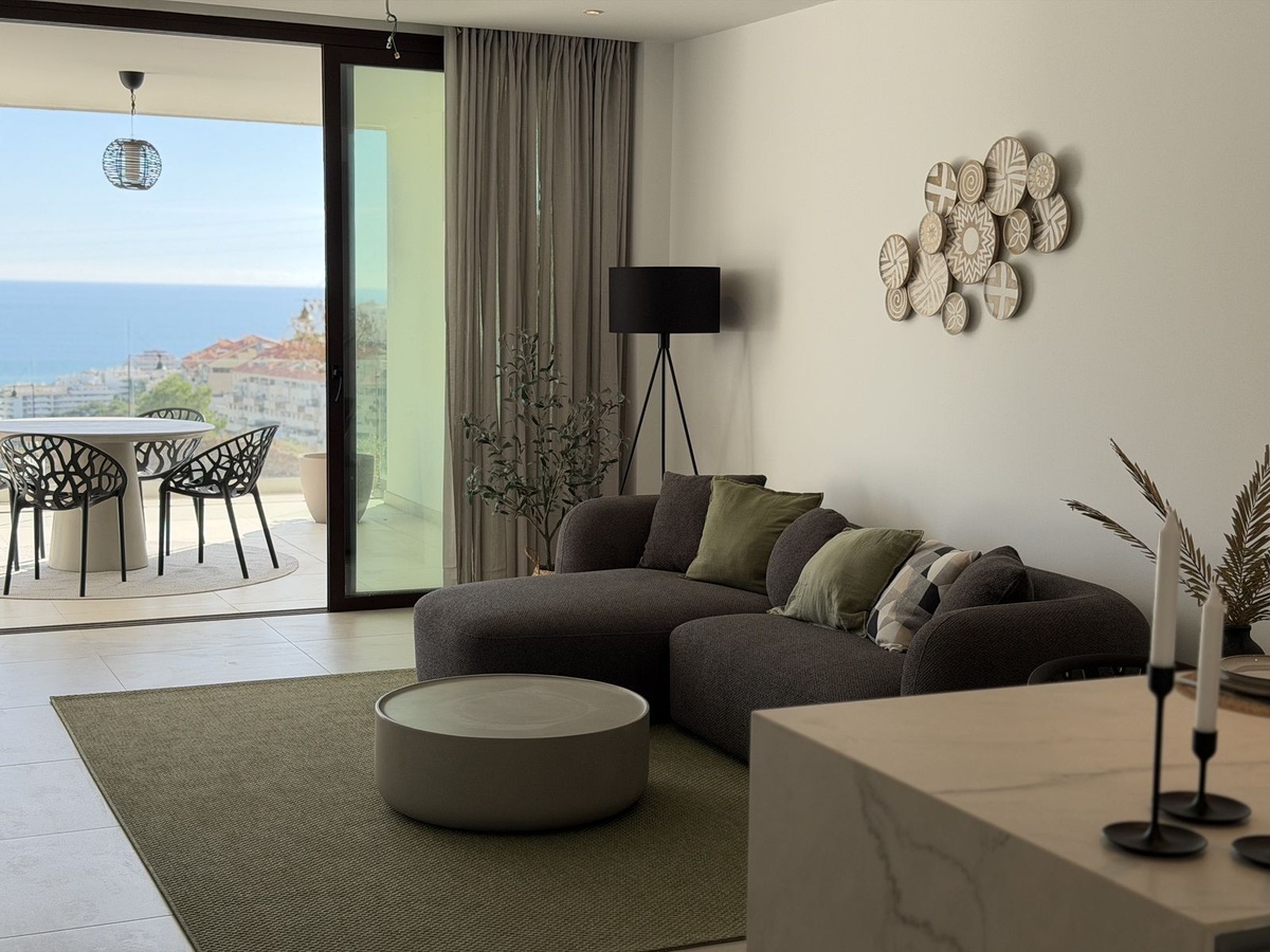 Experience coastal living in this newly built 120 m² ground-floor apartment positioned in the highly sought-after El Higuerón. The home features two generous bedrooms and two modern bathrooms, all finished with top-quality materials and beautiful design. The interiors come fully furnished and include a fully equipped kitchen that blends sleek aesthetics with everyday practicality.