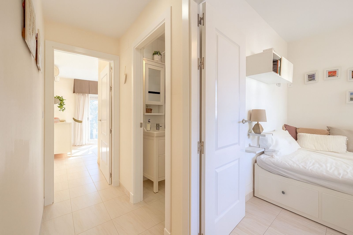 The main floor consists of an elegant entrance hall that leads to a charming kitchen and a living/dining room which connects directly to a terrace and balcony, from where one can already appreciate the magnificent view of the Fuengirola coast and the Sierra Nevada mountains.