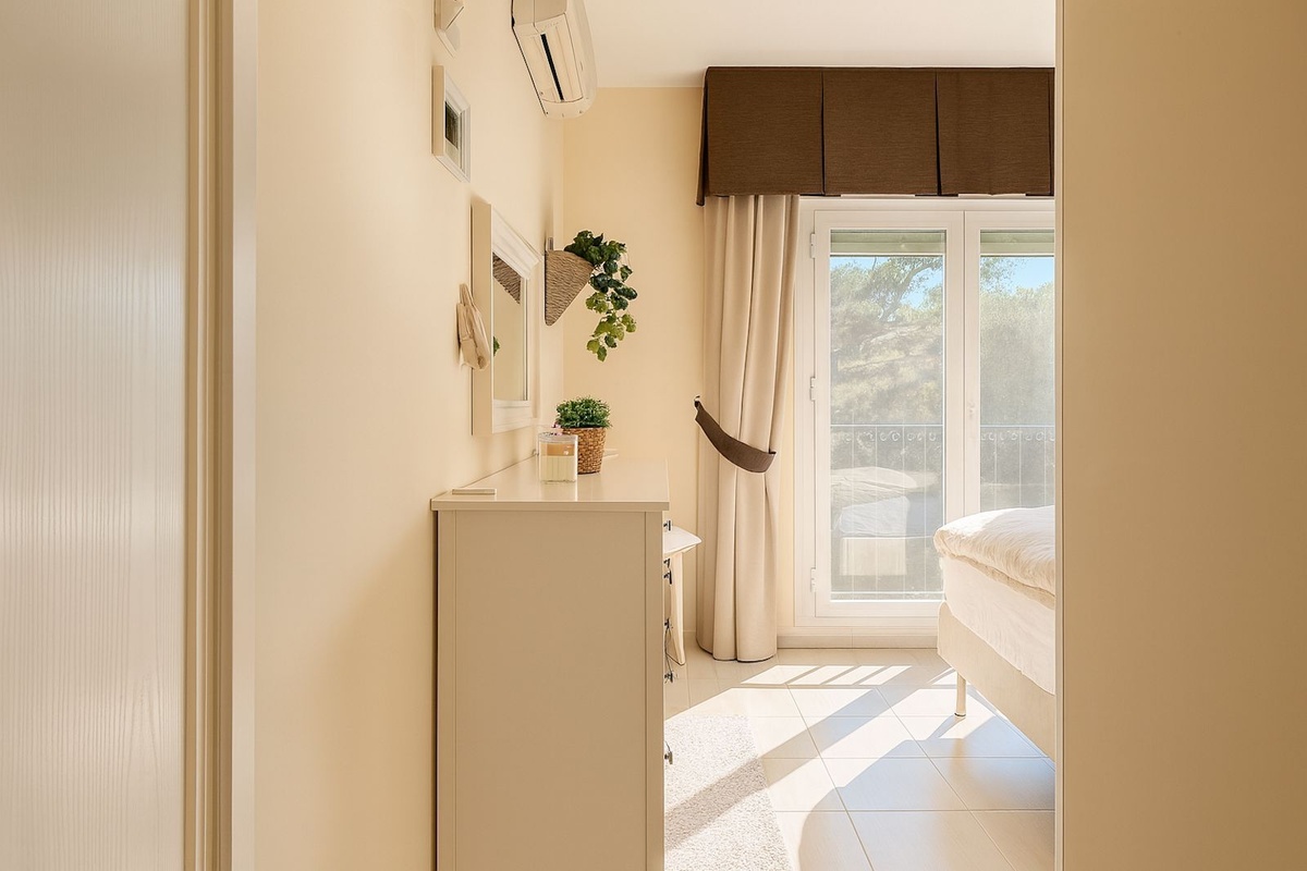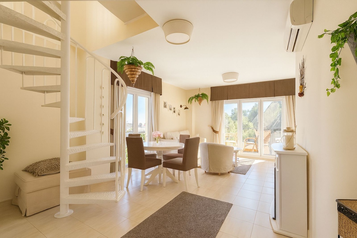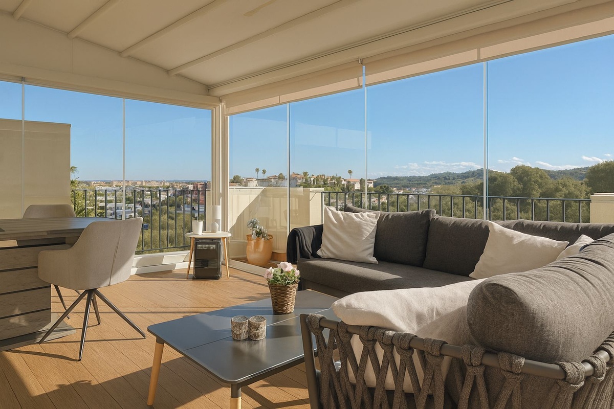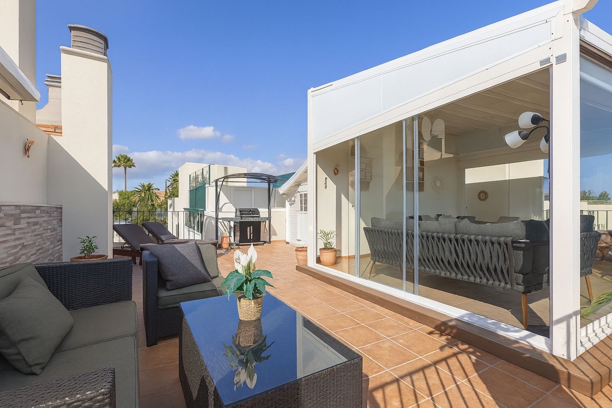 The highlight of this property is its upper floor. The current owners have transformed a part of the roof terrace into an enclosed glass pergola that can be opened with sliding doors, creating a second, very cozy living or lounge area with spectacular, year-round views.