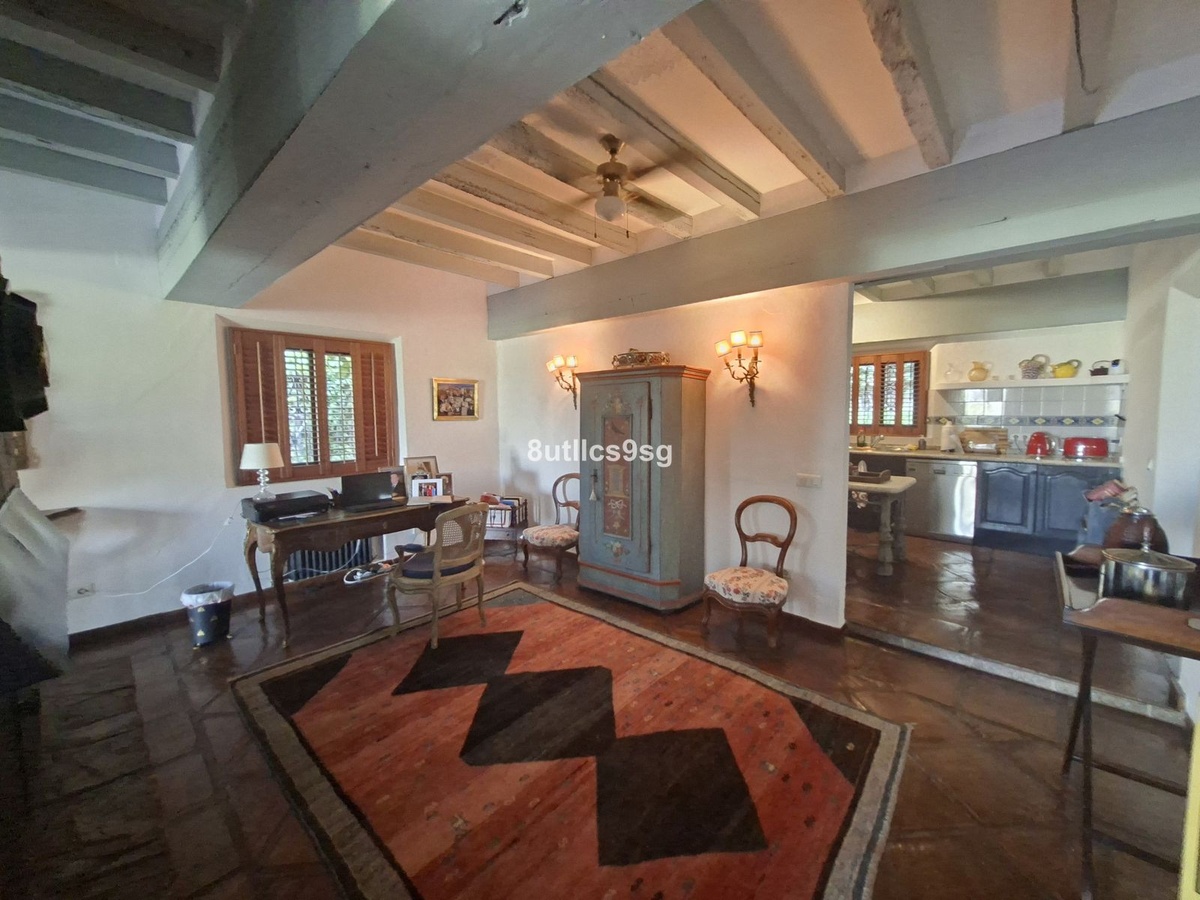 Set on a generous plot over 1.370sqm with a private garden and swimming pool, this characterful property features a unique layout that floods all the interiors with privacy across its spaces. Exposed wooden beams, a striking double-sided fireplace, and rustic finishes lend the villa a warm, timeless ambiance.