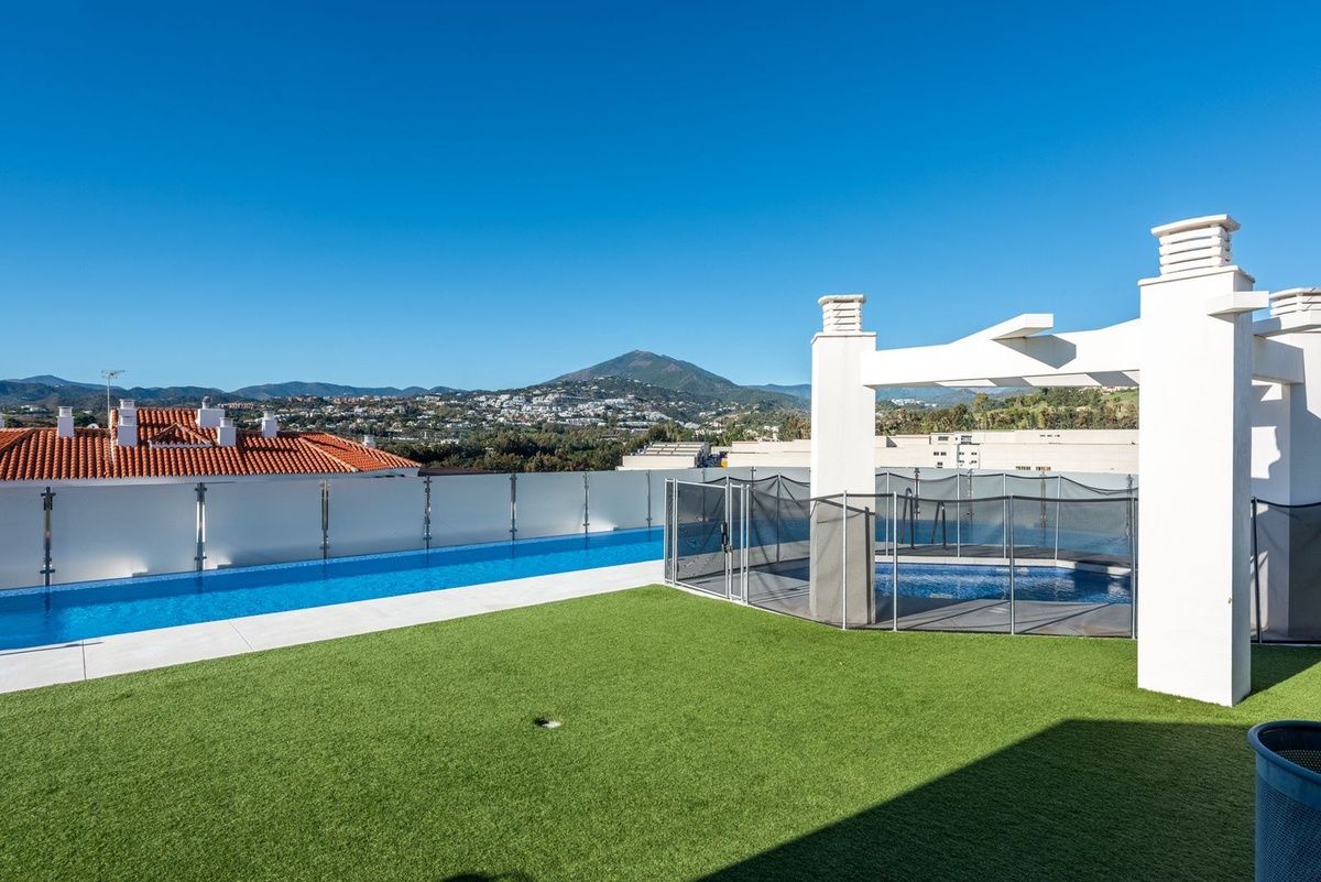 The apartment also features a separate kitchen with a dedicated laundry room, providing practicality and extra storage space. Residents benefit from private parking and exclusive access to a rooftop pool, ideal for enjoying the sunny weather and panoramic views. Located close to all local amenities, shops, restaurants, and transport links, this unfurnished rental provides a fantastic opportunity for anyone looking for a bright, modern home in one of the most sought-after areas of La Campana.