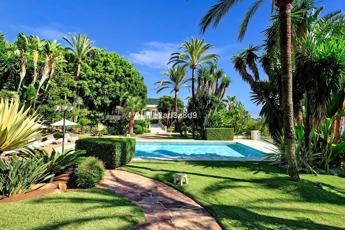 This extraordinary detached villa in Río Real, Marbella, offers a rare blend of classic Andalusian elegance and exceptional potential for modern transformation. Set atop a private hill, it enjoys uninterrupted views of the Mediterranean Sea, lush golf courses, and rolling green valleys—creating a serene yet captivating backdrop. With a vast plot of 5,775 m² and 2,600 m² of built space, the estate presents an outstanding lifestyle opportunity for discerning buyers seeking privacy, luxury, and architectural versatility.