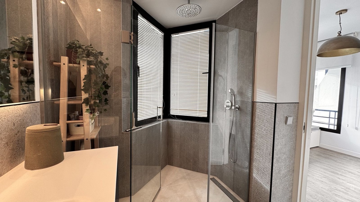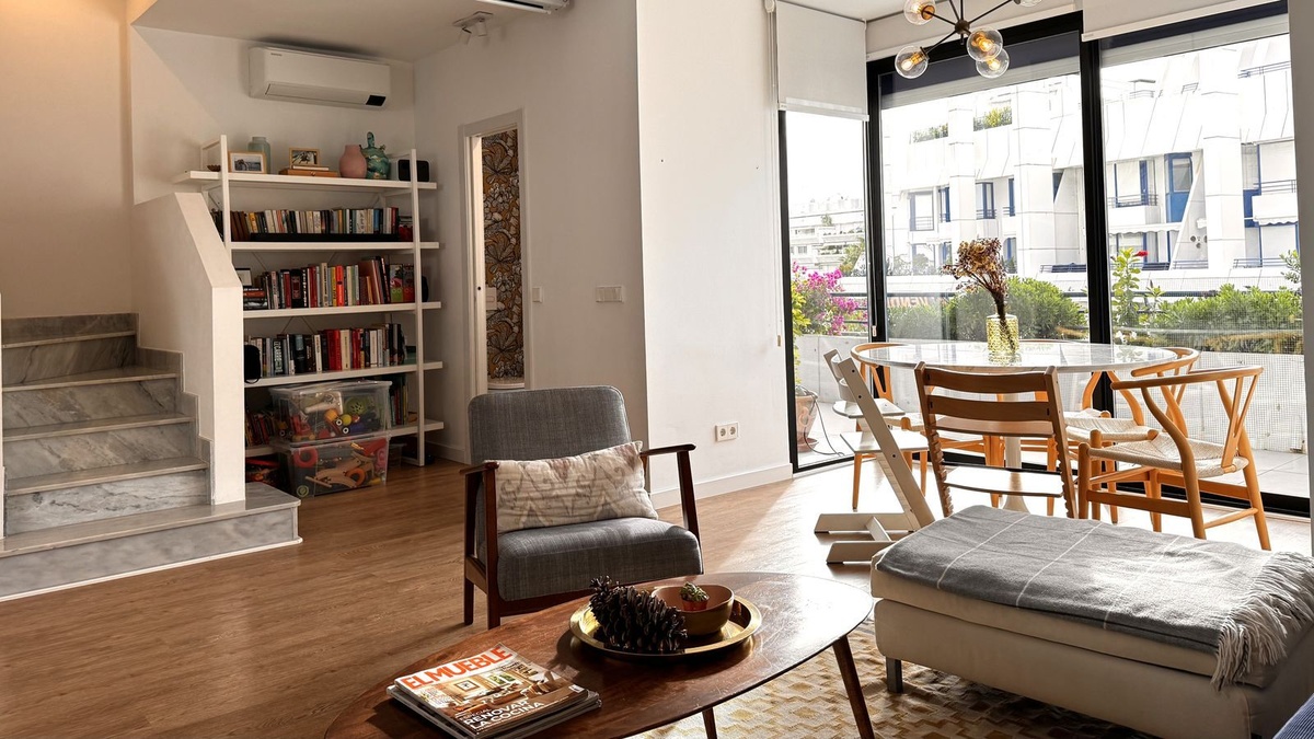 Fully renovated, the penthouse is laid out over three levels, making the most of natural light and the stunning Mediterranean views.