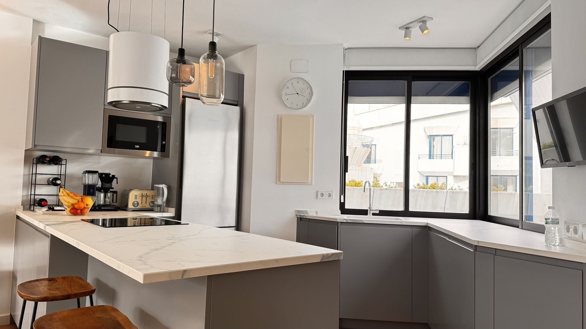 The rooftop terrace is undoubtedly the highlight: a spectacular private solarium with barbecue area and panoramic views of the sea and mountains. This level also includes an additional studio room, ideal as an extra bedroom, office or reading space.