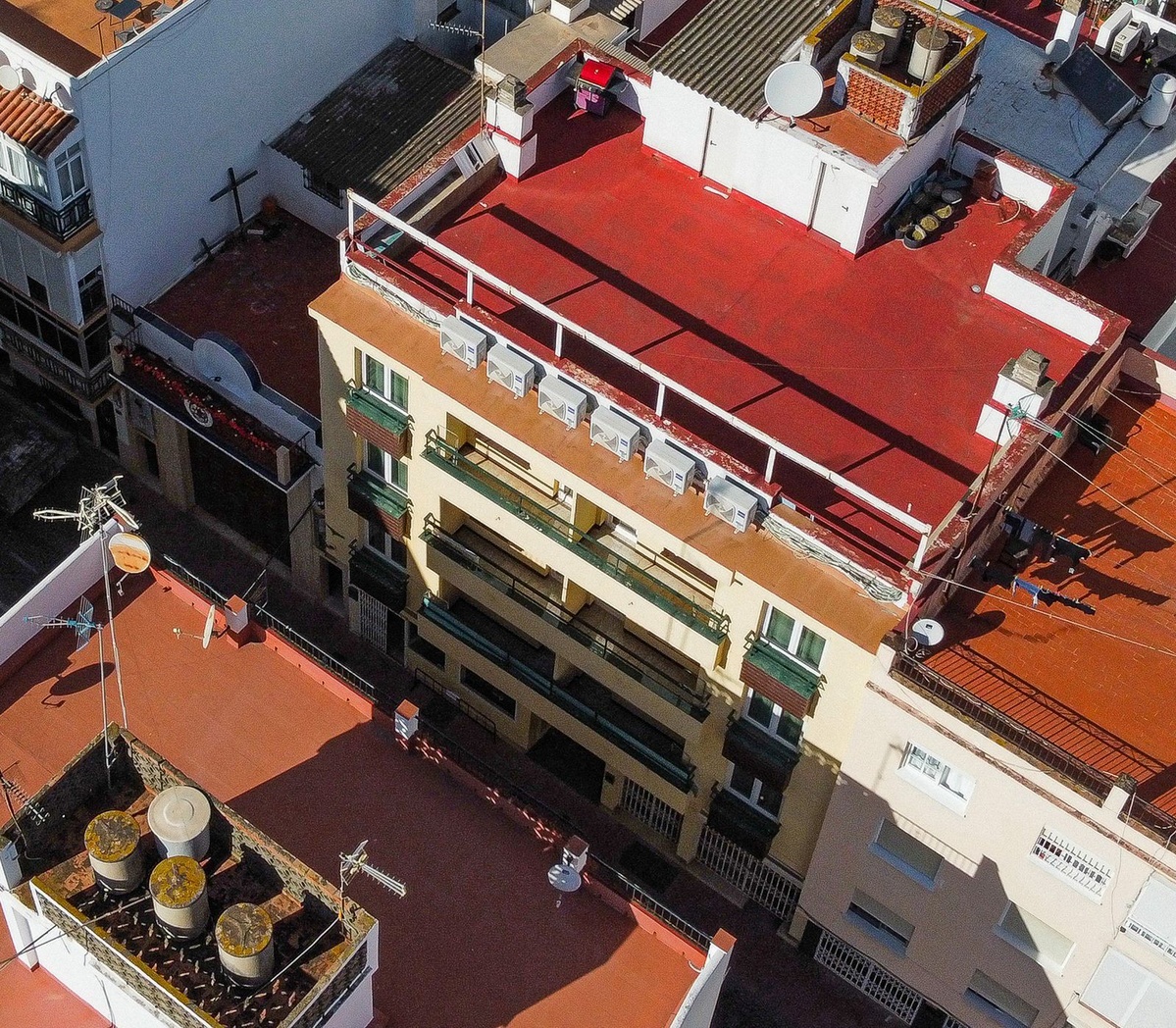 The building comprises 6 apartments of 68 m² built each, every one featuring its own private terrace with views over the Jesús Cautivo Brotherhood and Calle Terraza. Additionally, the first-floor apartments also benefit from an interior patio. All units include two spacious and bright bedrooms, an open-plan kitchen, a small dining area, and a living room with access to the terrace. The entire building has been fully renovated, including electrical and plumbing installations, the interiors of the apartments, and all finishes.