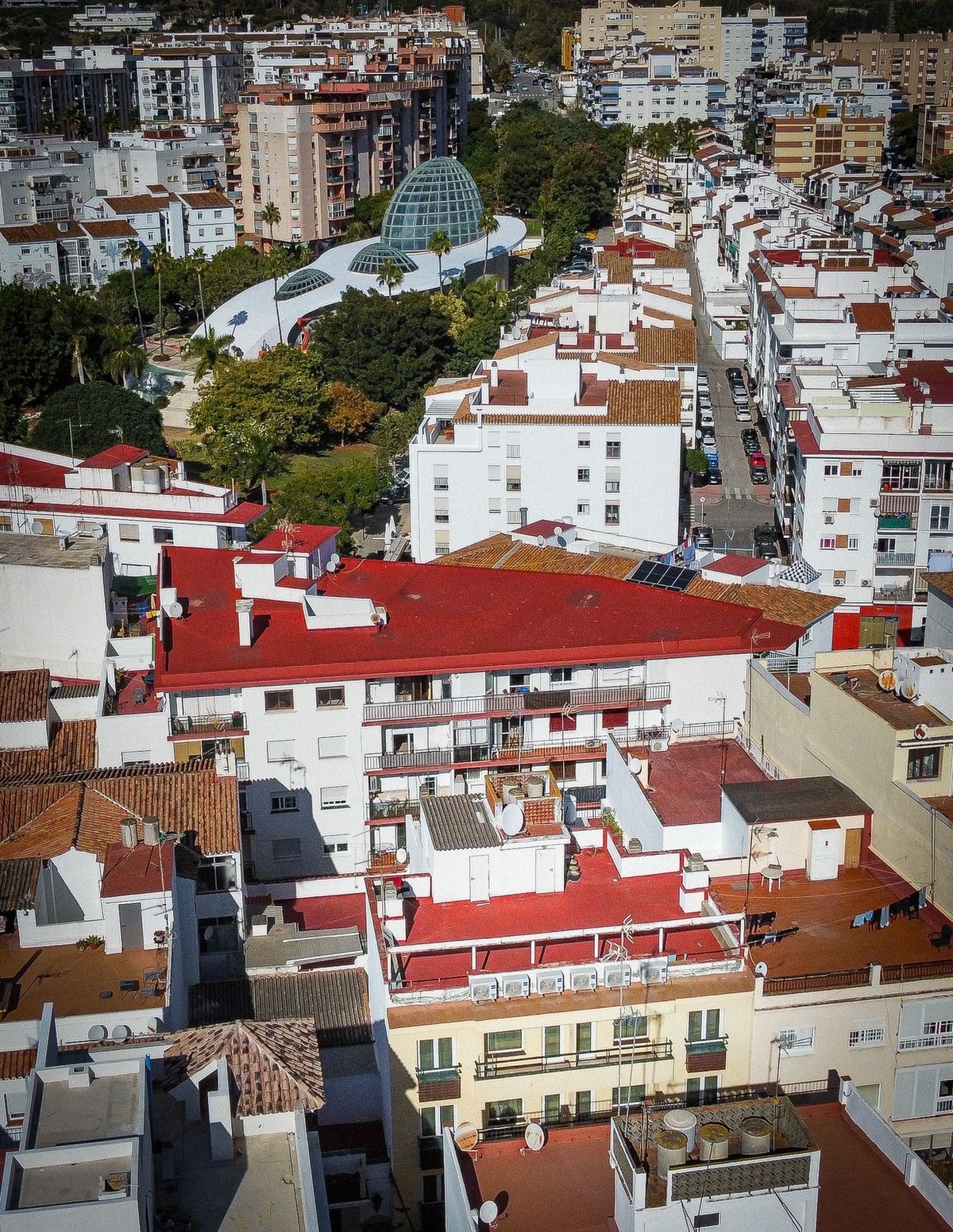 Stunning fully refurbished building with a tourist licence, located directly opposite Estepona’s most central, busy, and commercially active street: Calle Terraza. The property offers **667 m² built** —according to the Land Registry— distributed over Ground Floor + 3 Levels + Rooftop Solarium (5 floors in total).