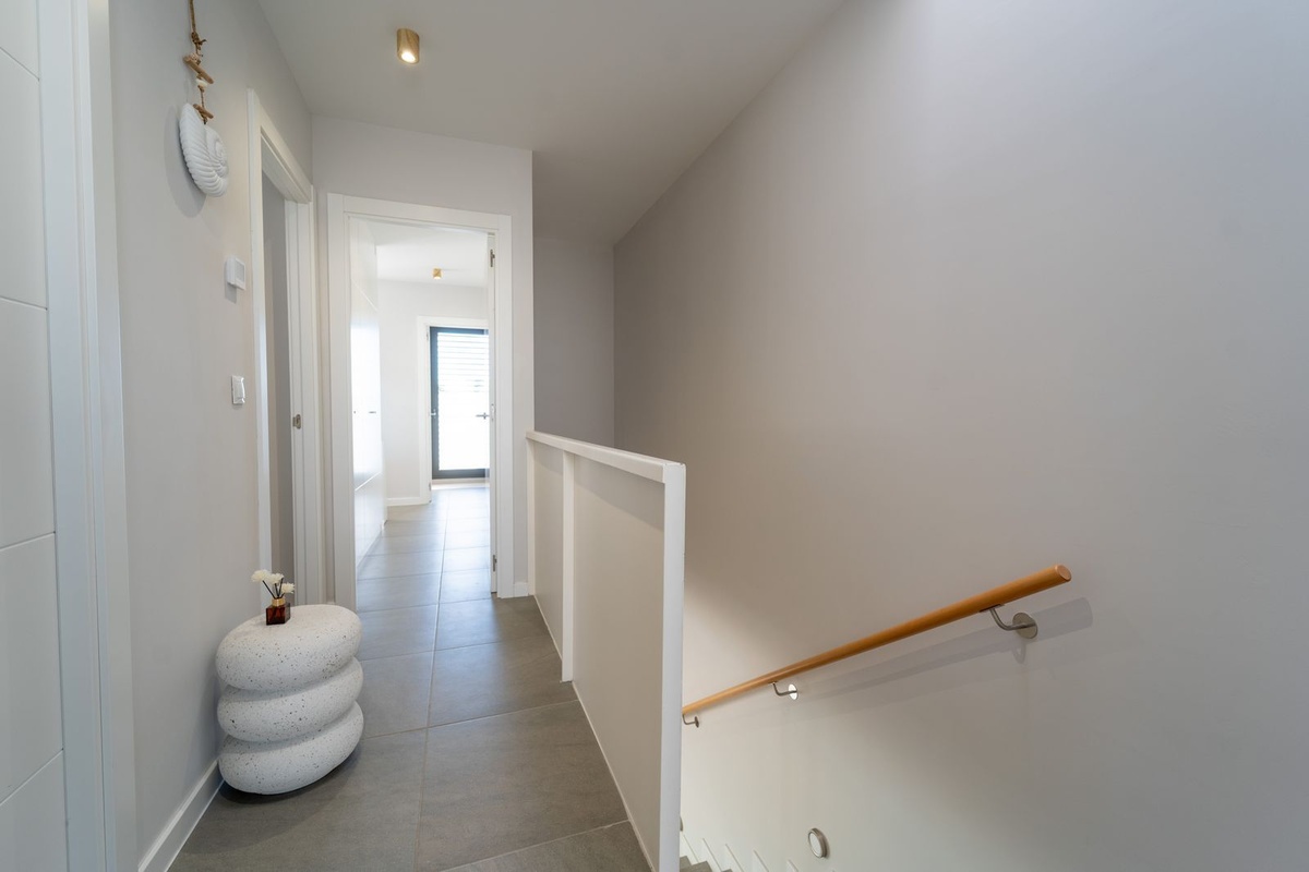 The ground floor welcomes you with a warm and inviting atmosphere, enhanced by elegant Cortizo windows that open to the manicured front garden.